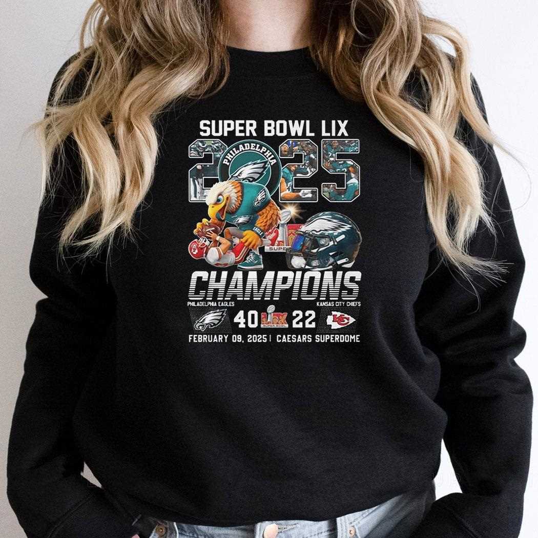 Eagles Super Bowl Lix 2025 Champions 40 22 Chiefs Shirt