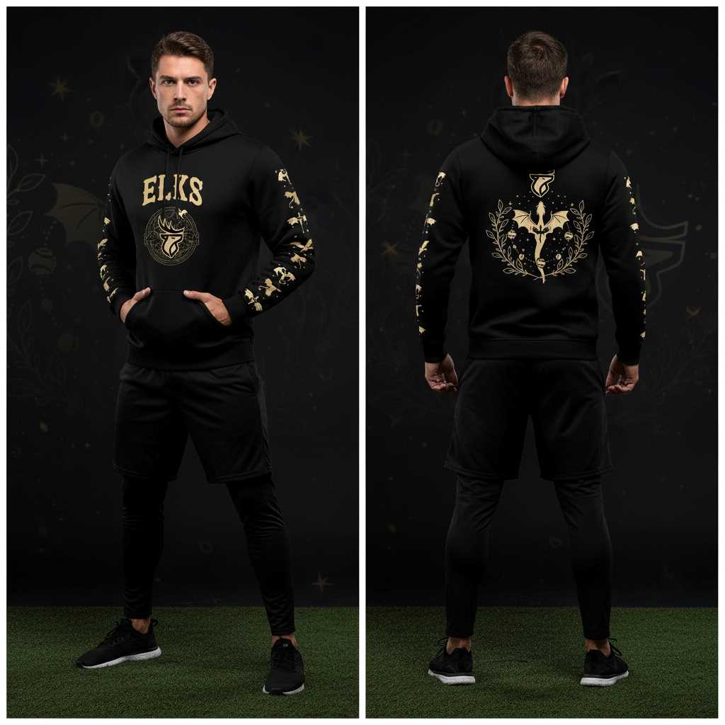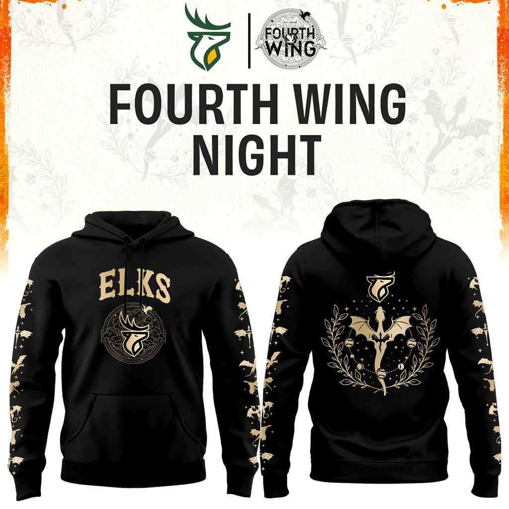 Step onto the gridiron with a mythical edge in the Edmonton Elks Fourth Wing Night Hoodie. This exclusive design merges the power of the Elks with the legendary aura of dragon riders, creating a piece of CFL gear that is truly epic. The black hoodie is adorned with intricate golden dragon wings on the sleeves and a massive, detailed golden dragon and sword graphic on the back. The Elks’ iconic “EE” logo is reimagined in a metallic gold finish on the front, symbolizing a noble and fierce spirit.The gold-foil details are applied with precision, reflecting light and catching eyes from every angle. Made from a premium, mid-weight fleece, this hoodie offers a soft touch and a comfortable fit that is ideal for those cool Edmonton evenings. The ancient runes and dragon scale patterns on the sleeves add a layer of storytelling to the garment, making it a favorite for fans of both high fantasy and professional football. It represents a bridge between the tradition of the Elks and a new world of adventure.This is a must-have for fans who want something more than just a standard team sweatshirt. It’s a bold statement piece that honors the strength of the team while embracing a unique artistic vision. It’s designed to be worn by those who lead and inspire, both on and off the field.Embrace the fire and the fury of the Elks! Purchase your Edmonton Elks Fourth Wing Night Hoodie today and wear a legend on your back!