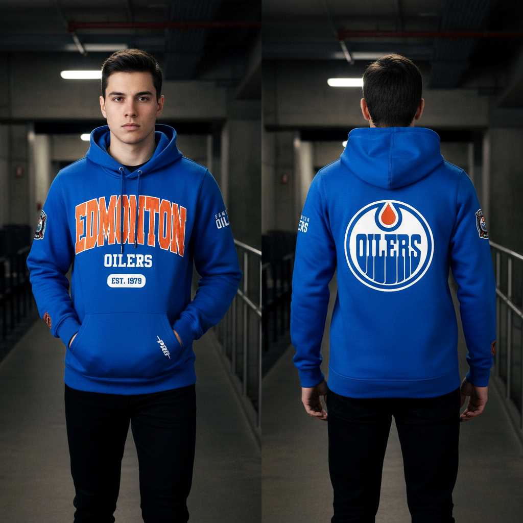 Premium quality Edmonton Oilers 2026 City Arch All Blue Night Tee Hoodie design. 100% cotton, machine washable.