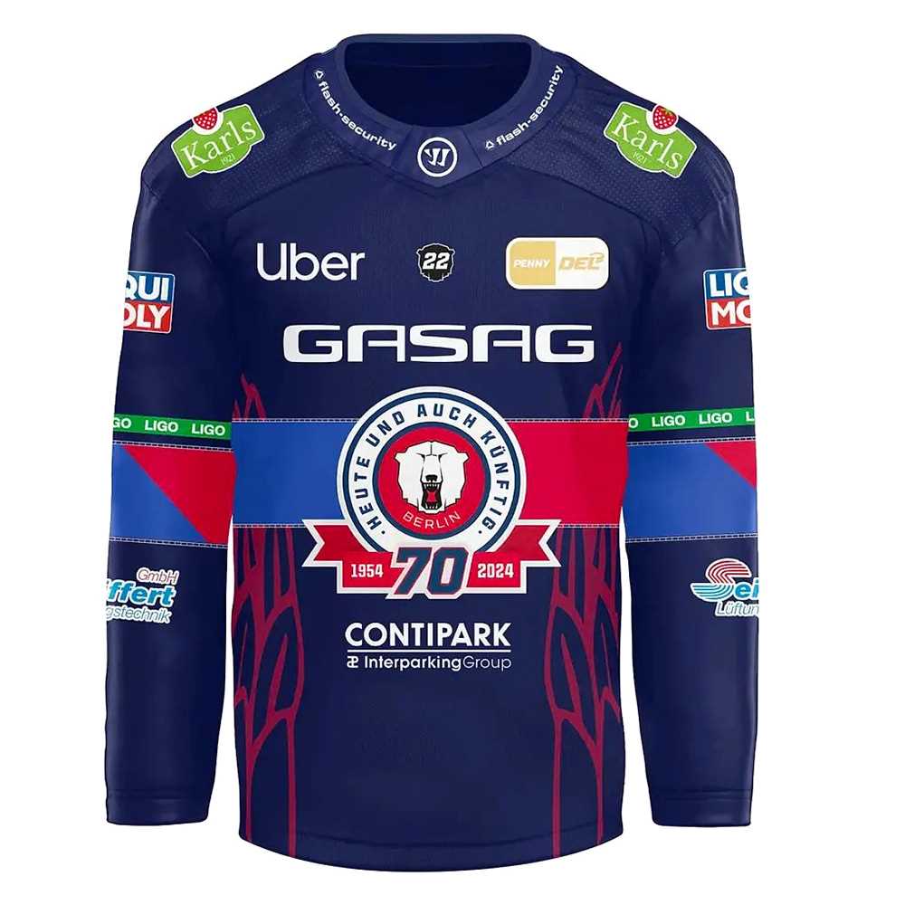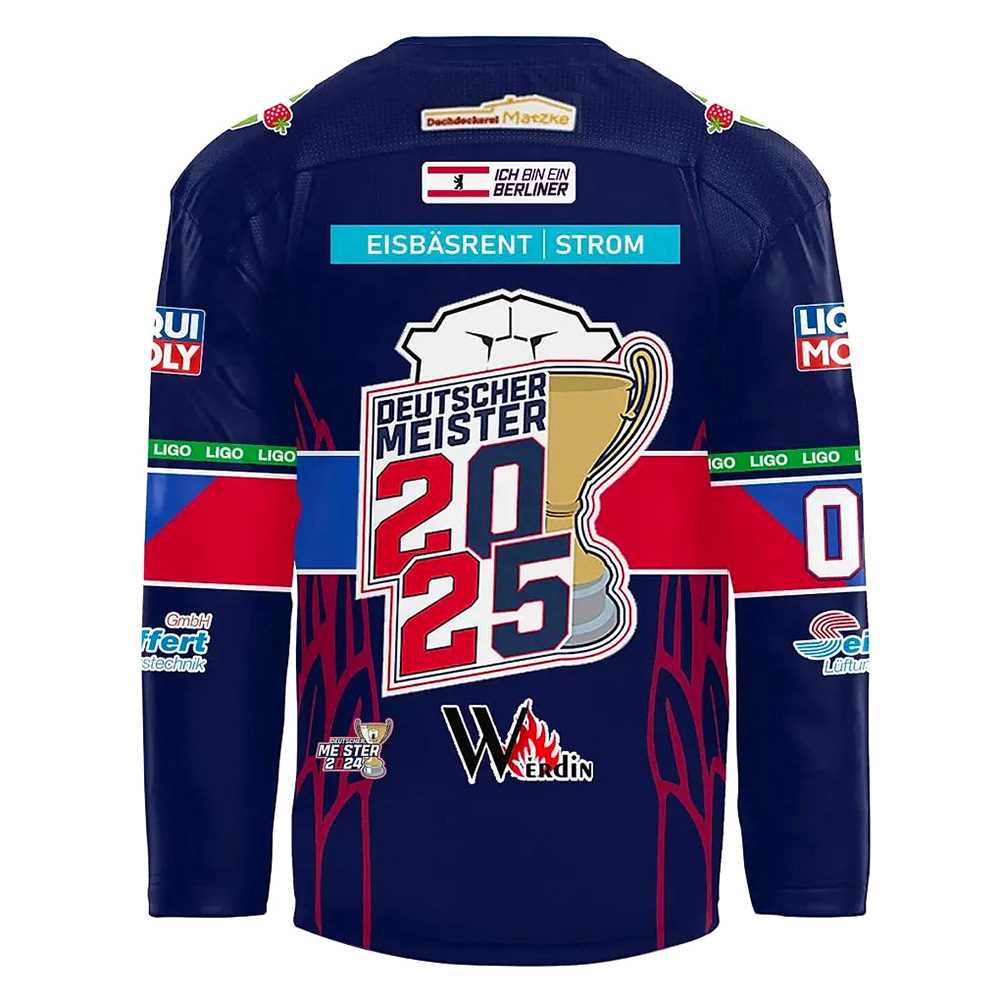 - Introducing the Eisbren Berlin Deutscher Meister Special Hockey Jersey , the perfect addition to any fan’s collection! .The Eisbren Berlin Deutscher Meister Special Hockey Jersey is more than just a piece of sports apparel; it’s a symbol of pride and achievement for fans and players alike. This jersey celebrates the team’s remarkable journey to becoming champions, embodying the spirit of excellence that defines the Eisbren Berlin organization.
