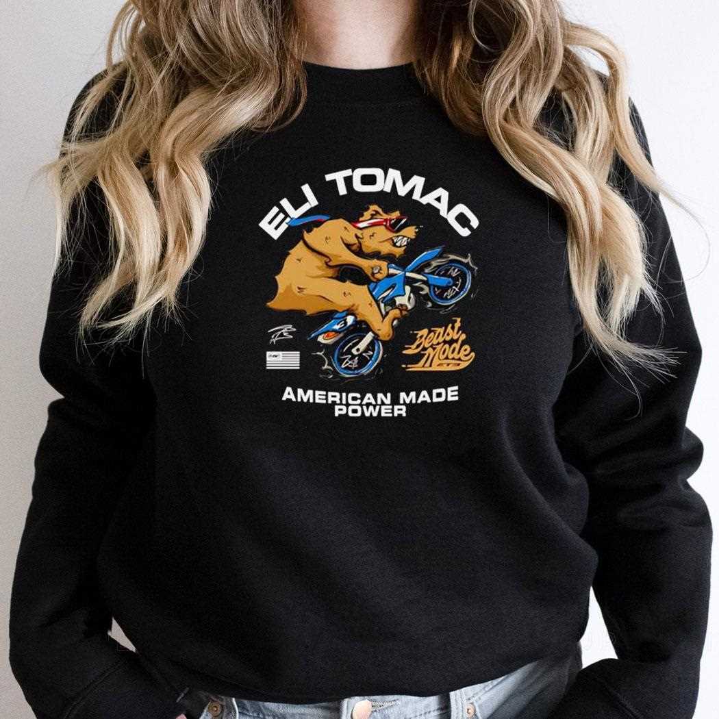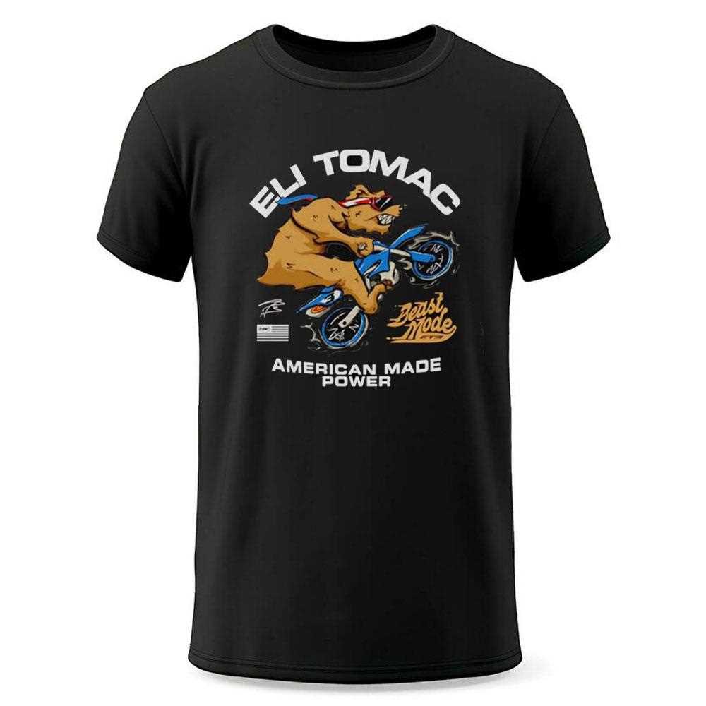 Don’t miss out on owning a piece of this iconic gear—embrace the power within you with the Eli Tomac Beast Mode American Made Power Shirt!.