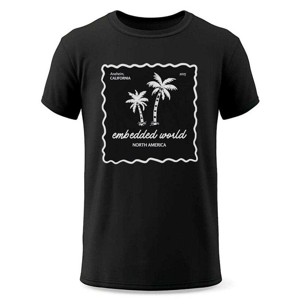 A clean, minimalist design for the tech professional. This t-shirt, for a fictional “Embedded World North America 2025” conference in Anaheim, features a simple and stylish palm tree graphic. It’s a perfect, low-key piece of memorabilia. Get with the program. This is a great, subtle tee for anyone in the tech industry. Add this piece of conference-style swag to your collection..