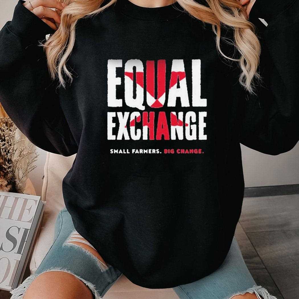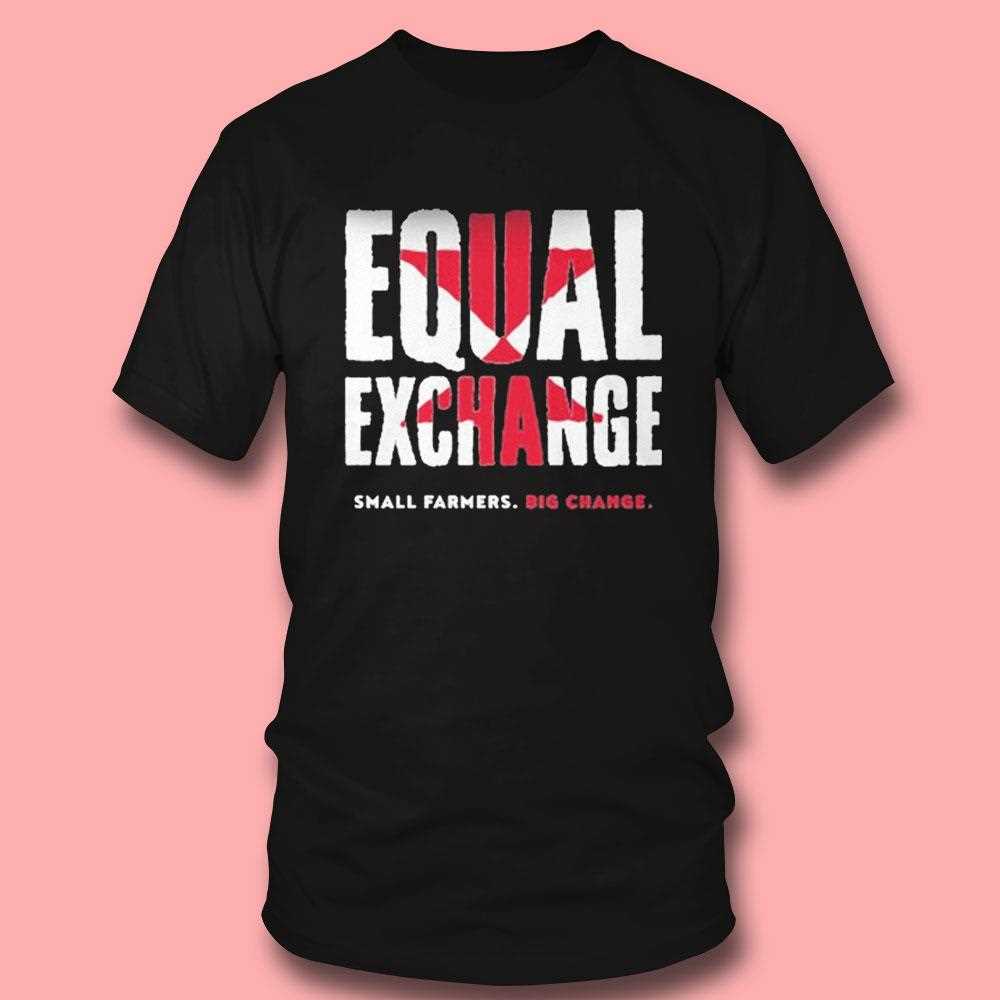 Wear the change you want to see in the world. The Equal Exchange Small Farmers Big Change Shirt is more than just apparel; it’s a symbol of your support for a more equitable world. We’ve ensured this important message is printed on a comfortable and durable 100% cotton T-shirt, so you can spread the word for years to come. Join the movement today!. T-shirt !