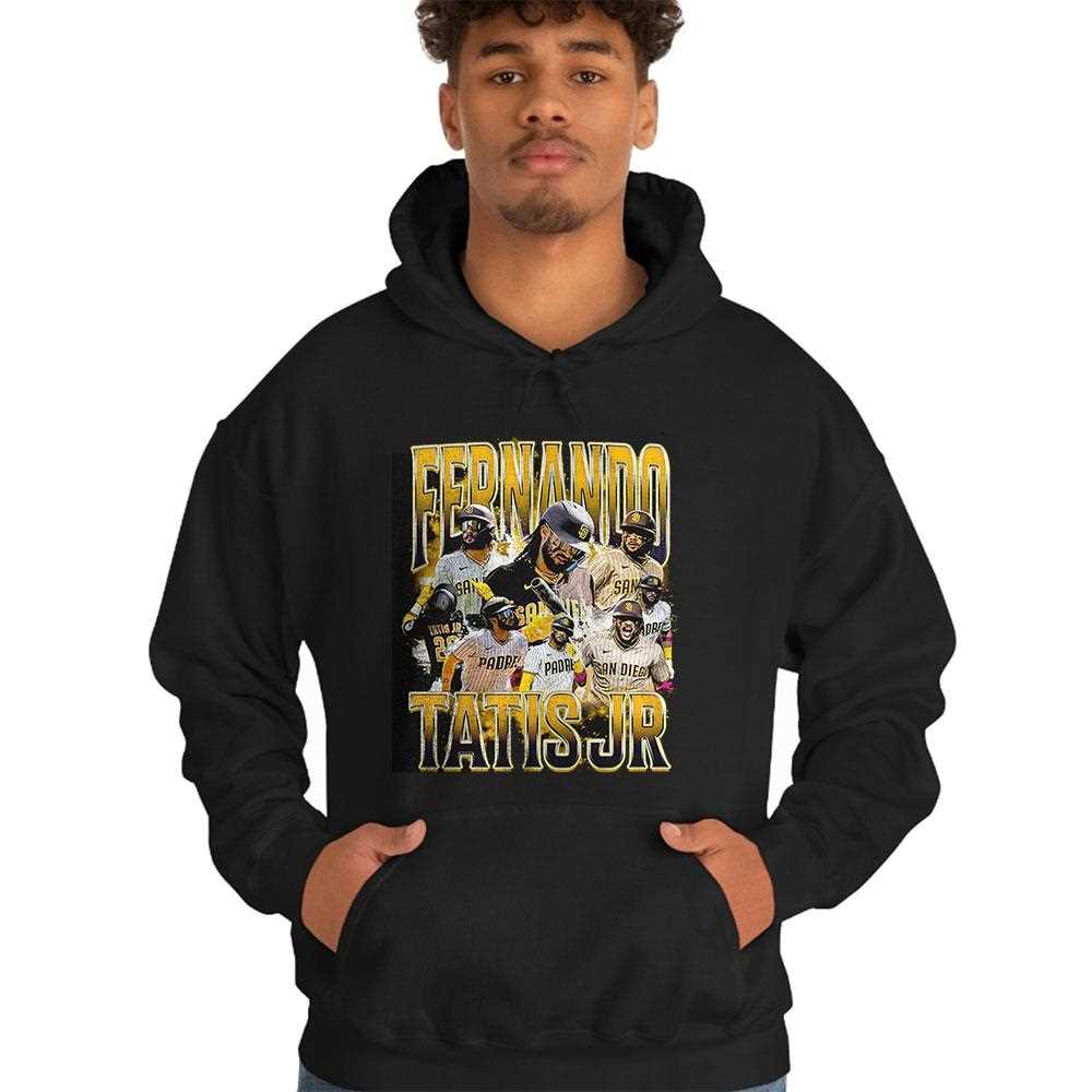 .If you’re a true baseball fan, then owning a Fernando Tatis Jr. San Diego Padres MLB baseball player graphic shirt is an absolute must! This shirt not only showcases your support for one of the most electrifying players in the league but also serves as a stylish addition to your game-day attire. Tatis Jr.’s dynamic playing style and charismatic personality have made him a fan favorite, and wearing his graphic shirt allows you to express that admiration proudly.