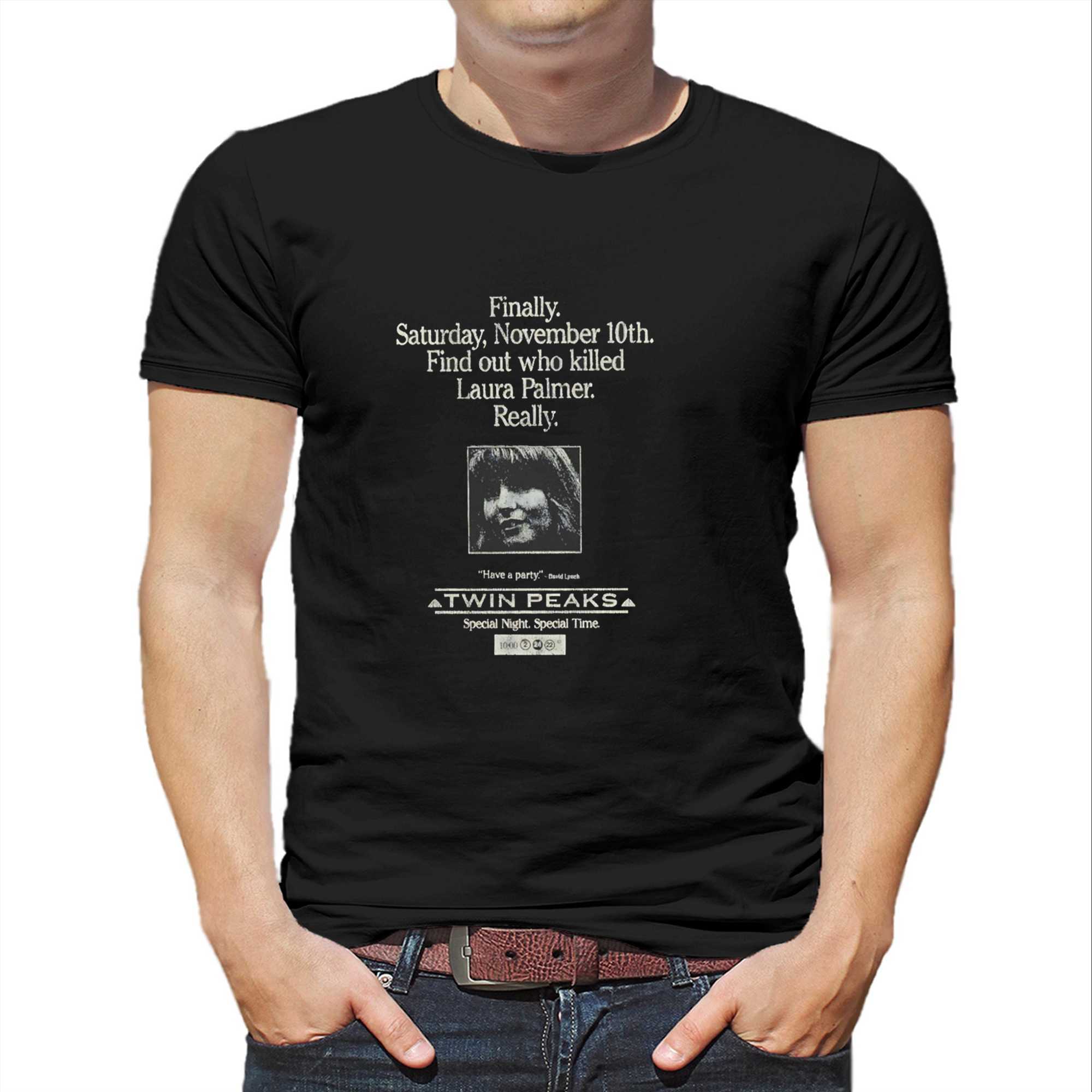 Finally Saturday November 10th Find Out Who Killed Laura Palmer Really Twin Peaks Tee