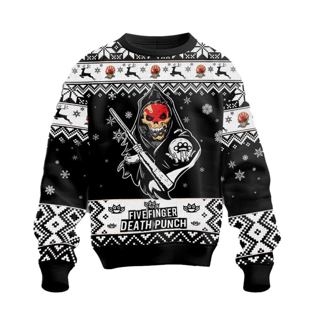 .If you’re looking to make a bold statement this holiday season, look no further than the Five Finger Death Punch Christmas Ugly Sweater. This isn’t just any festive attire; it’s a unique blend of holiday cheer and heavy metal flair that truly stands out. Imagine walking into a holiday party, instantly capturing attention with a design that showcases your love for both Christmas and one of the most iconic bands in the metal scene.