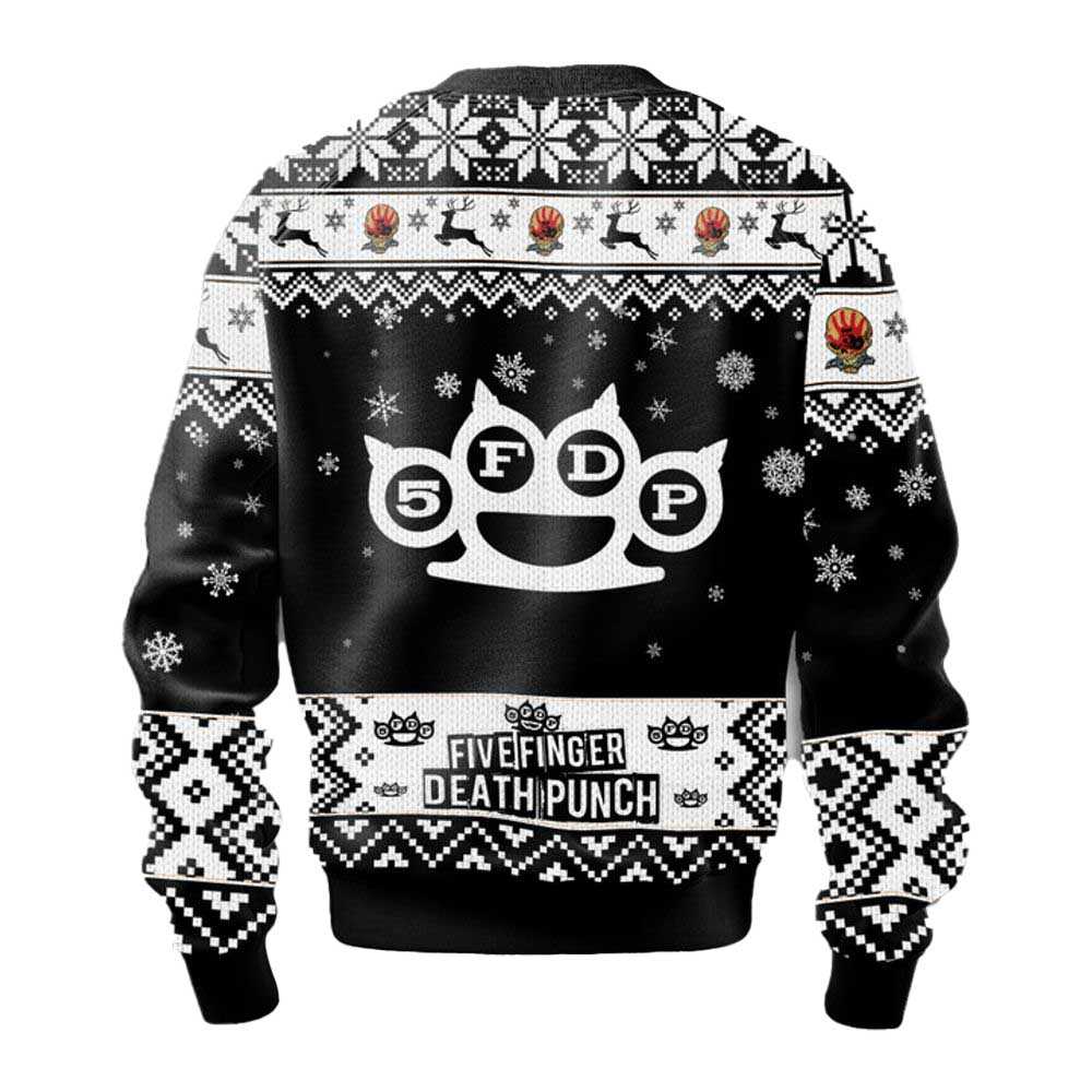 The Five Finger Death Punch Christmas Ugly Sweater is not only eye-catching but also incredibly comfortable, making it perfect for long nights of celebration or cozy evenings by the fire. It’s an ideal conversation starter—whether you’re among fellow fans or introducing someone new to the band’s powerful music.
