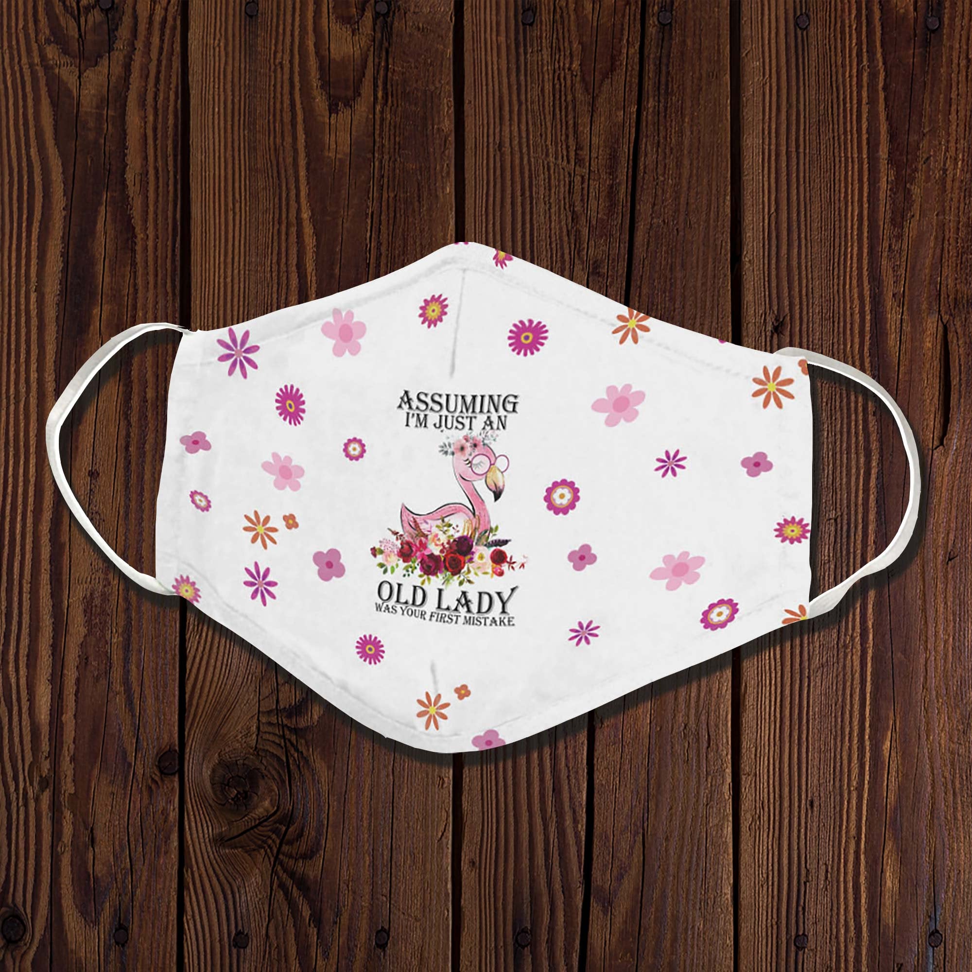 Flamingo Assuming Im Just An Old Lady Was Your First Mistake Face Mask