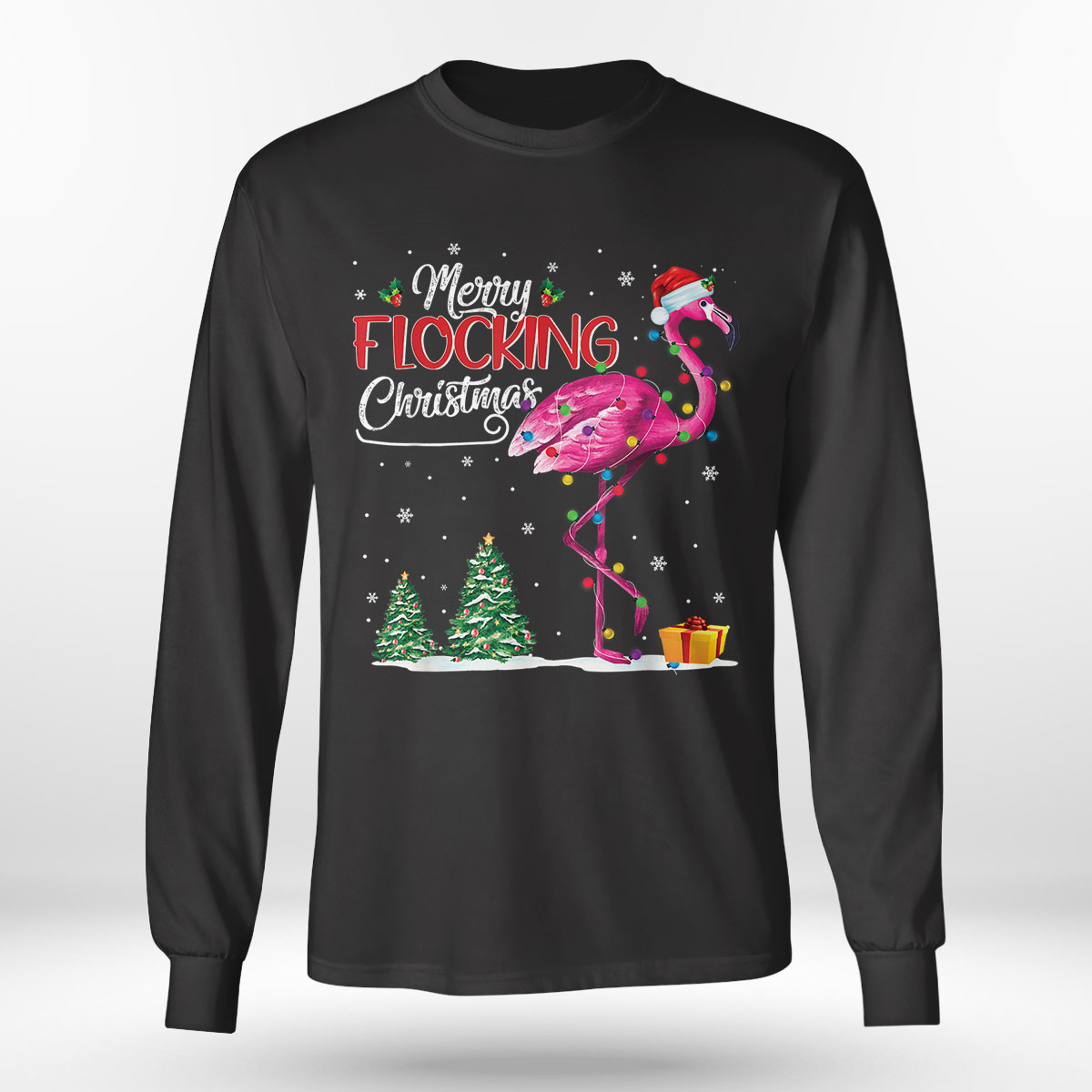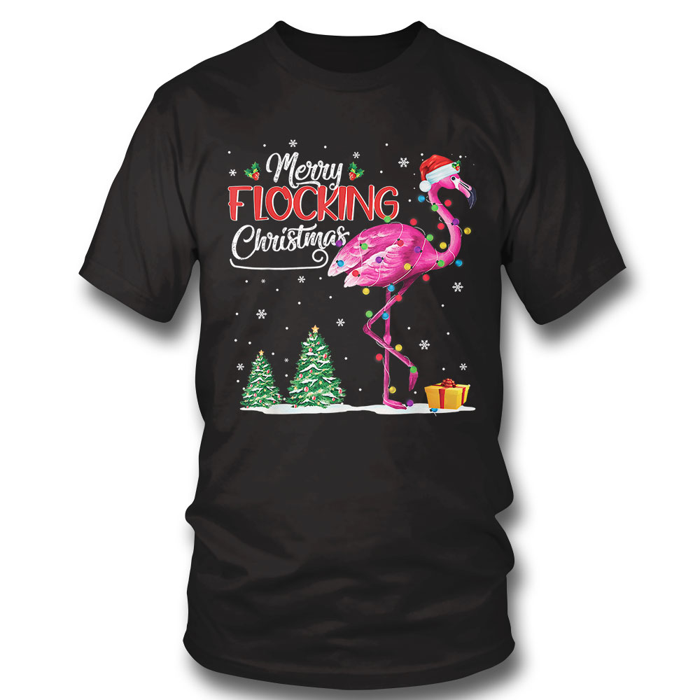 Flamingo Pink In Santa Hat Xmas Merry Flocking Christmas Sweatshirt
