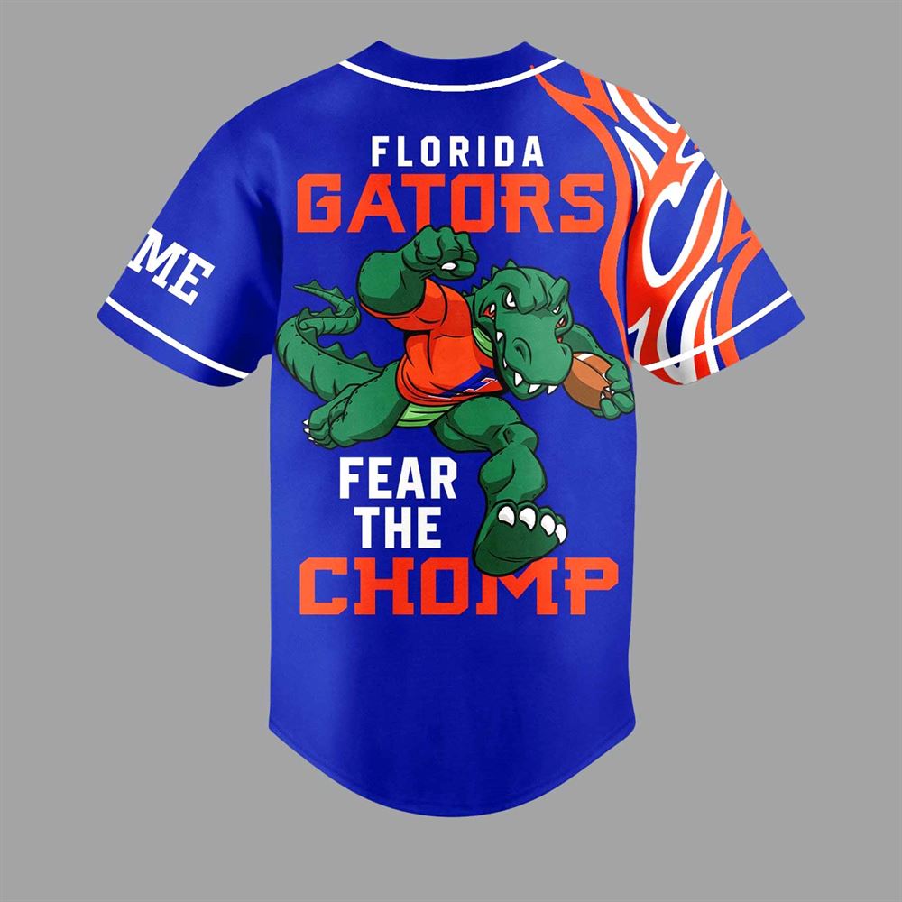 - Introducing the Florida Gators Fear The Chomp Custom Baseball Jersey , the perfect addition to any fan’s collection! .When it comes to showing off your team spirit, nothing beats the Florida Gators Fear The Chomp Custom Baseball Jersey. This unique piece of apparel is not just a jersey; it’s a statement that embodies the pride and passion of Gators fans everywhere. Crafted with high-quality materials, this custom jersey ensures comfort and durability, making it perfect for game days or casual outings.