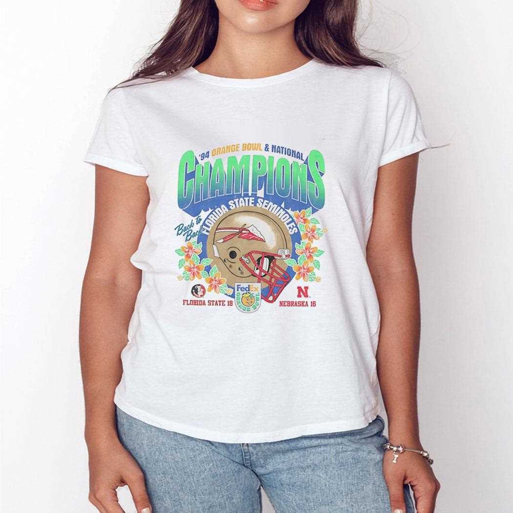 Florida State Seminoles Vs Nebraska Cornhuskers 94 Orange Bowl And National Champions Tee