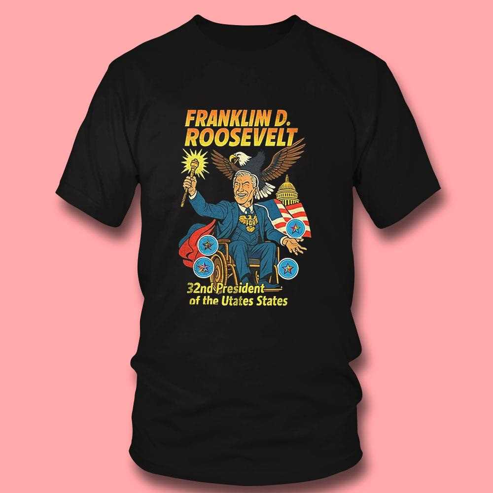 Imagine donning this unique garment that showcases key moments from Roosevelt’s time in office, sparking conversations about his New Deal policies, leadership during World War II, and the profound impact he had on American society. This shirt serves as an educational tool as much as it does a fashion statement, making it perfect for history enthusiasts or anyone looking to honor the values that FDR stood for.