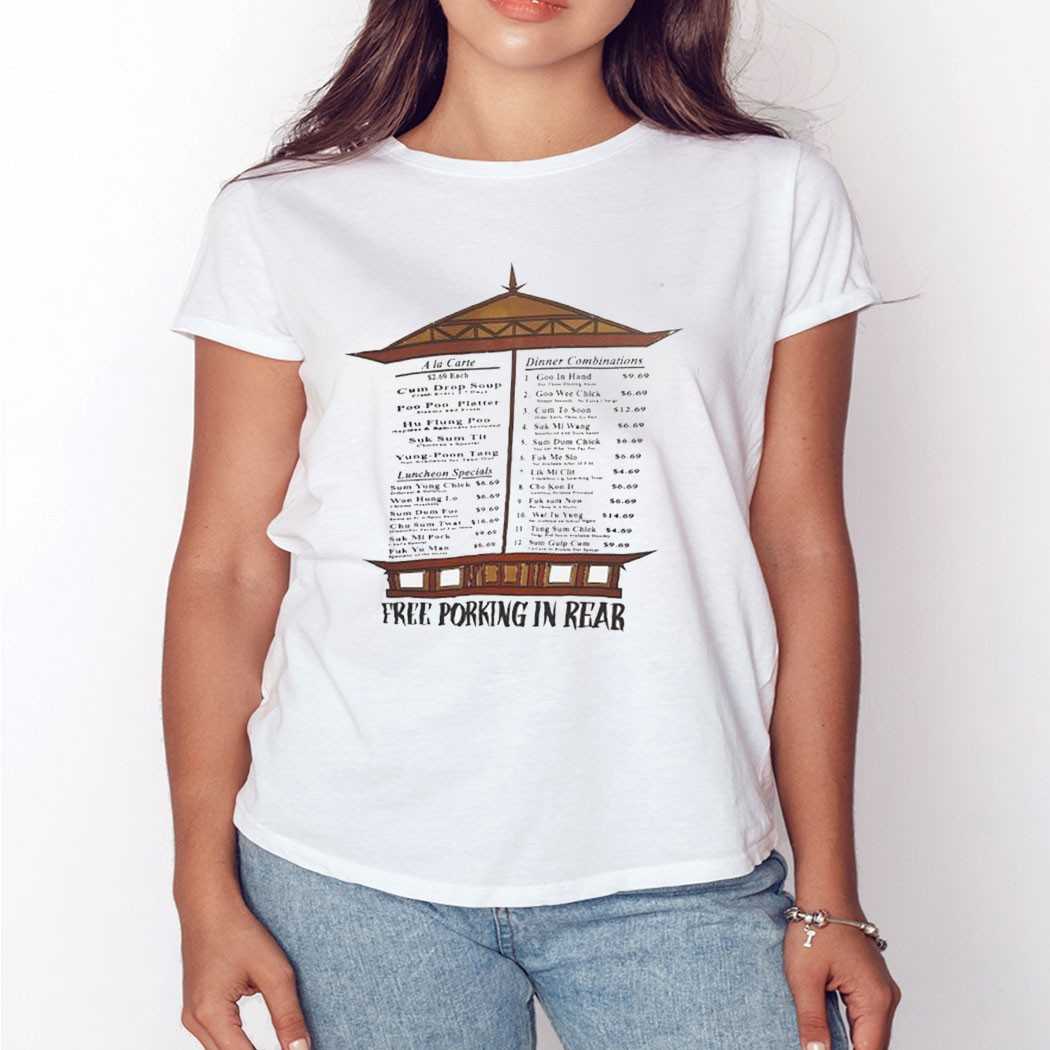 Crafted from high-quality materials, the Free Porking In Rear Shirt ensures comfort alongside its eye-catching design. It’s perfect for anyone who appreciates witty humor and isn’t afraid to showcase their unique sense of style. The playful message invites laughter and camaraderie, making it an ideal gift for friends who enjoy good food and good times.