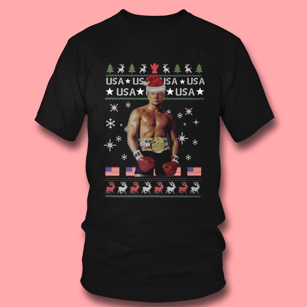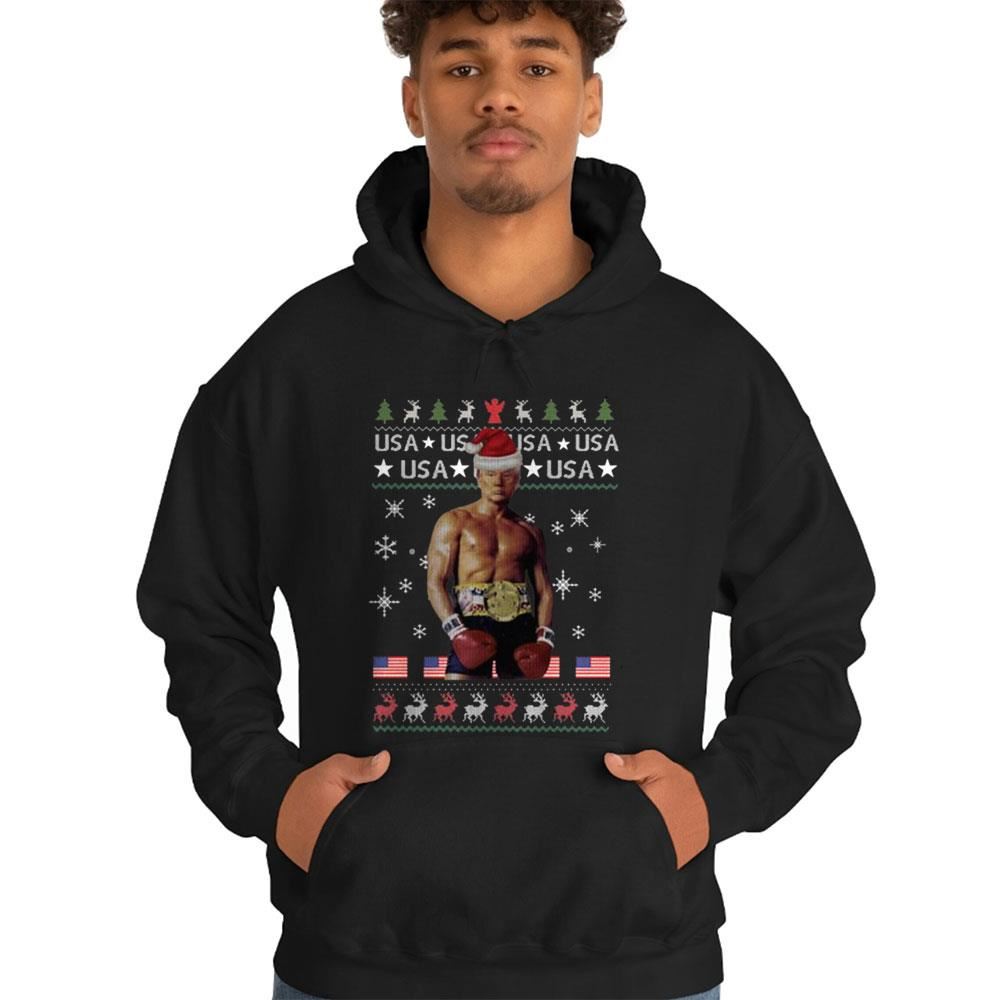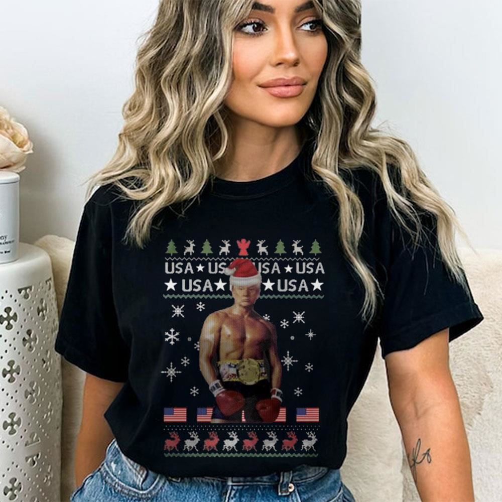 So why settle for a generic holiday shirt when you can stand out from the crowd with the Funny Boxer Trump Rocky Ugly Christmas Shirt? Spread some laughter and showcase your sense of humor with this one-of-a-kind piece that is bound to be a hit at any festive gathering. Order yours today and get ready to bring joy and merriment wherever you go!.