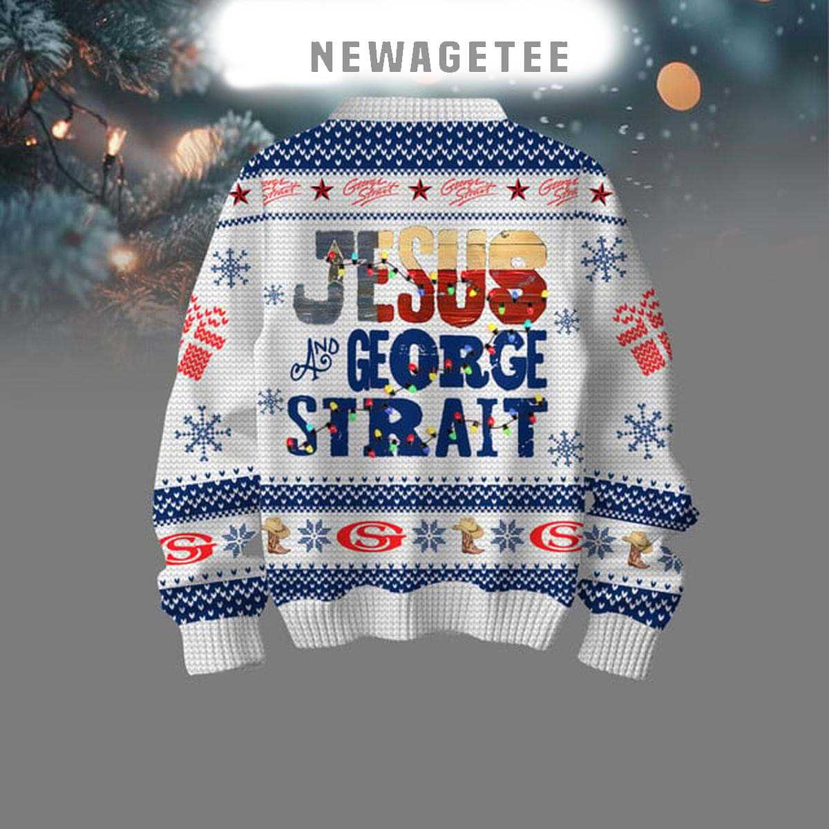 George Strait Jesus I Strait Up 2025 Ugly Christmas Sweater