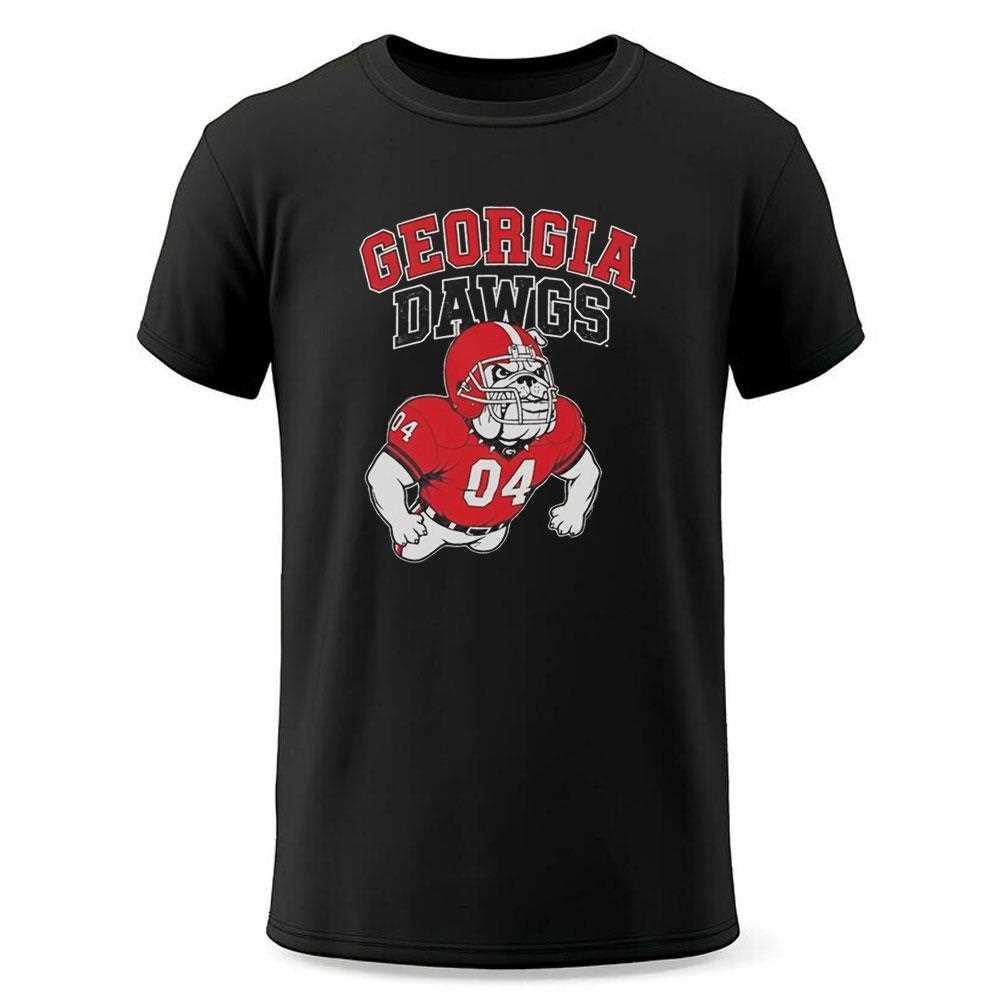 Keep it classic with this spirited “Georgia Dawgs” fan shirt. The design features a bold, high-quality helmet graphic in the center, showcasing the iconic “G” logo. Below the helmet, the jersey number “04” adds a specific player tribute or year reference, customizing the fan experience. The typography is collegiate and athletic, using the team’s signature red and black palette. It is a clean, essential piece of fan gear that focuses on the fundamentals: the helmet and the nickname. Ideal for every Saturday between the hedges. Show your loyalty and order the Georgia Bulldogs Georgia Dawgs Tee for the season!. T-shirt !