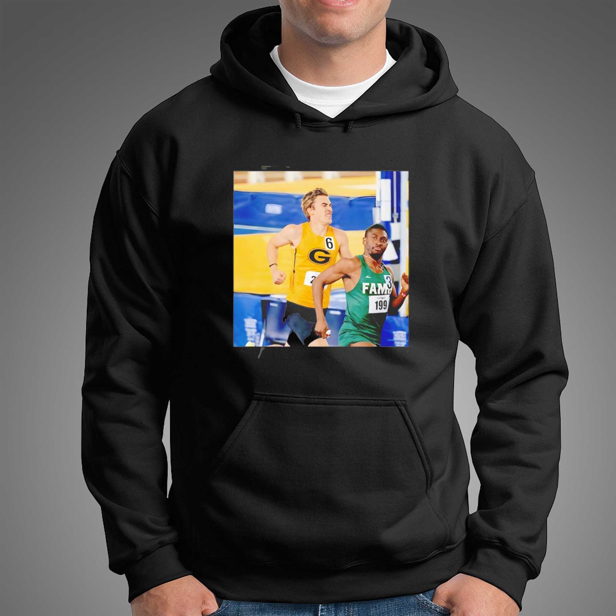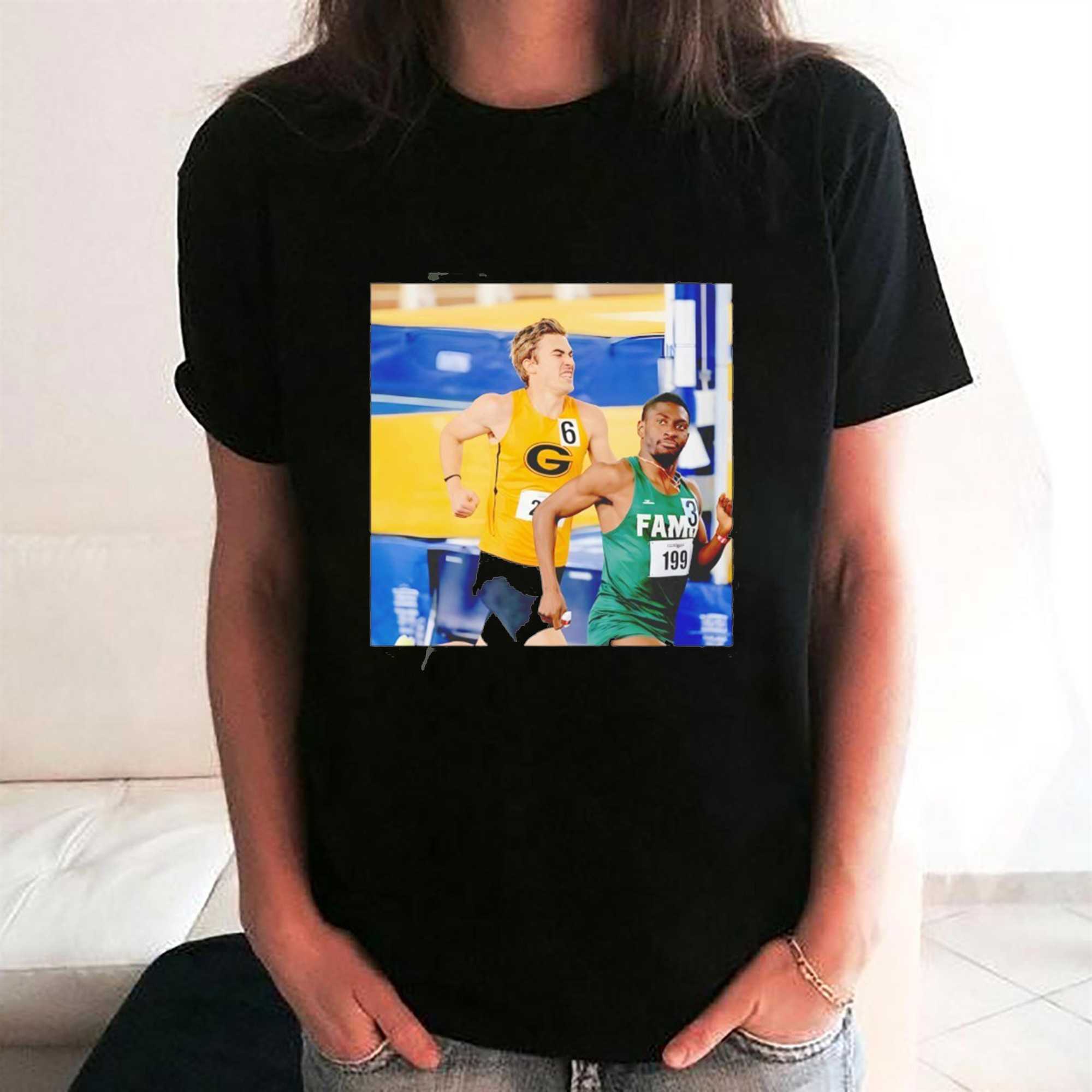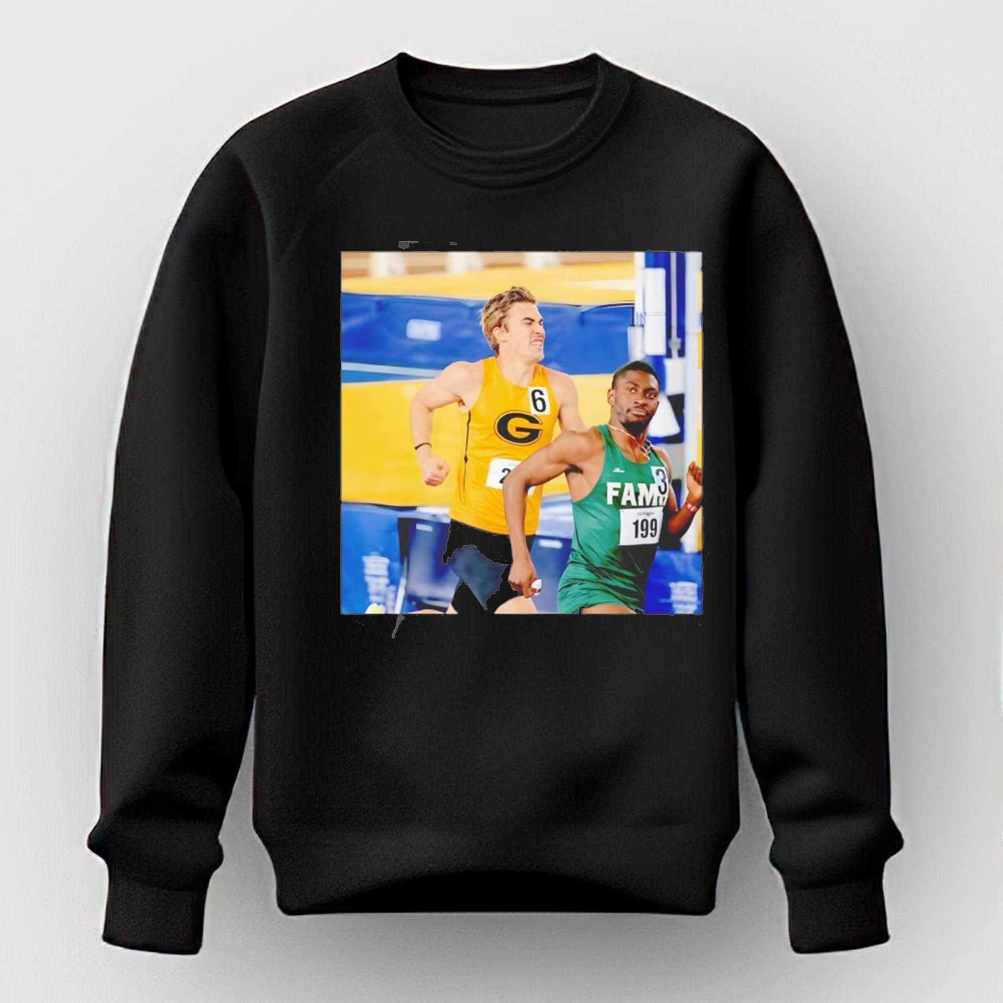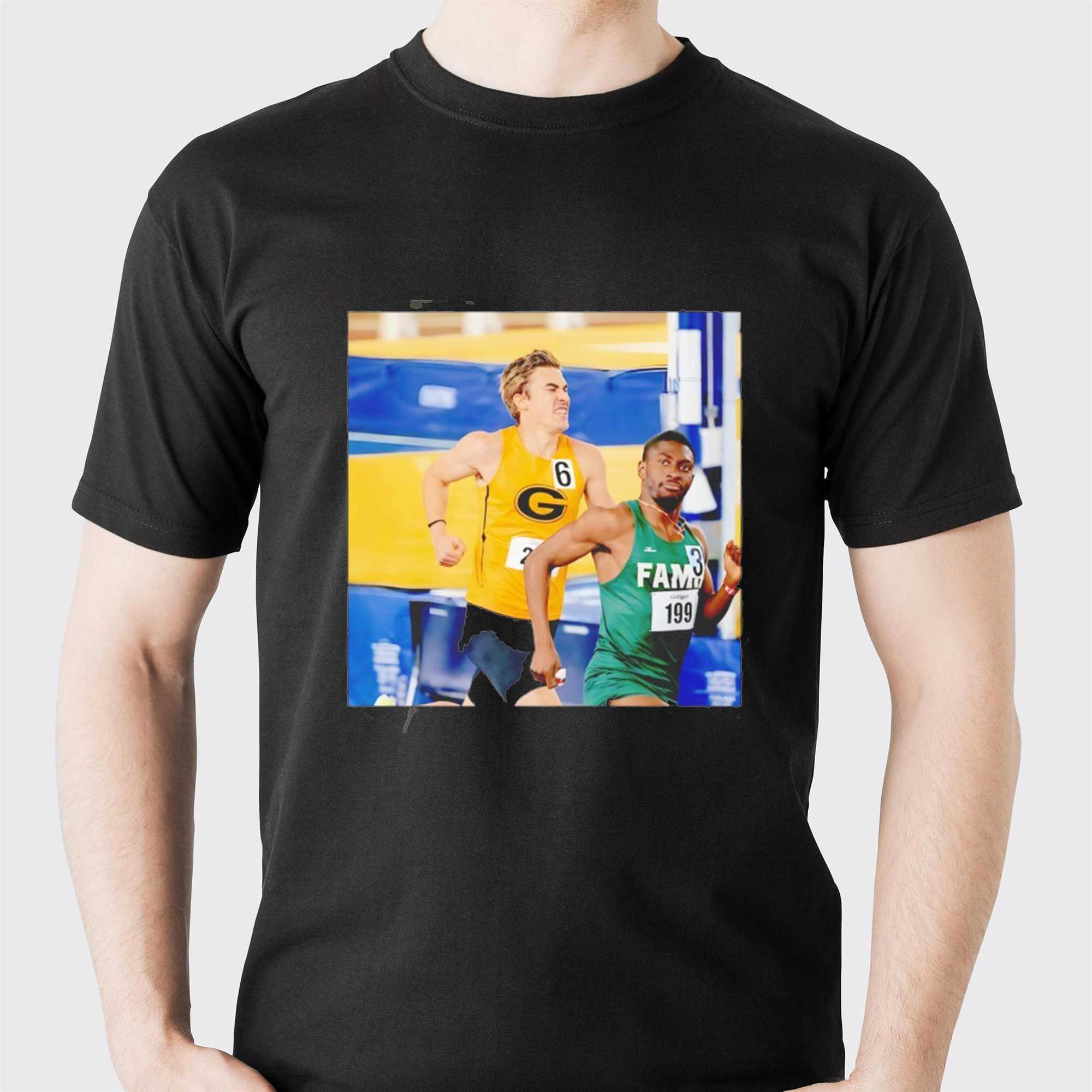 Get The 10 and embrace the hilarious reality of competitive effort with our latest tee! This design brilliantly captures a pivotal moment in a track race, showcasing two male runners in vivid detail. On the left, a runner in a yellow singlet with a prominent ‘G’ and number ‘6’ grimaces intensely, his face contorted in a comical display of pure, unadulterated strain. Beside him, in stark contrast, is another runner in a green singlet marked ‘FAM’ and ‘199’, looking remarkably calm, cool, and seemingly effortlessly in control. This side-splitting juxtaposition perfectly encapsulates the ‘me vs. the guy who didn’t even try’ meme, making it an instant conversation starter for anyone who understands the struggle of giving it your all while someone else makes it look easy.