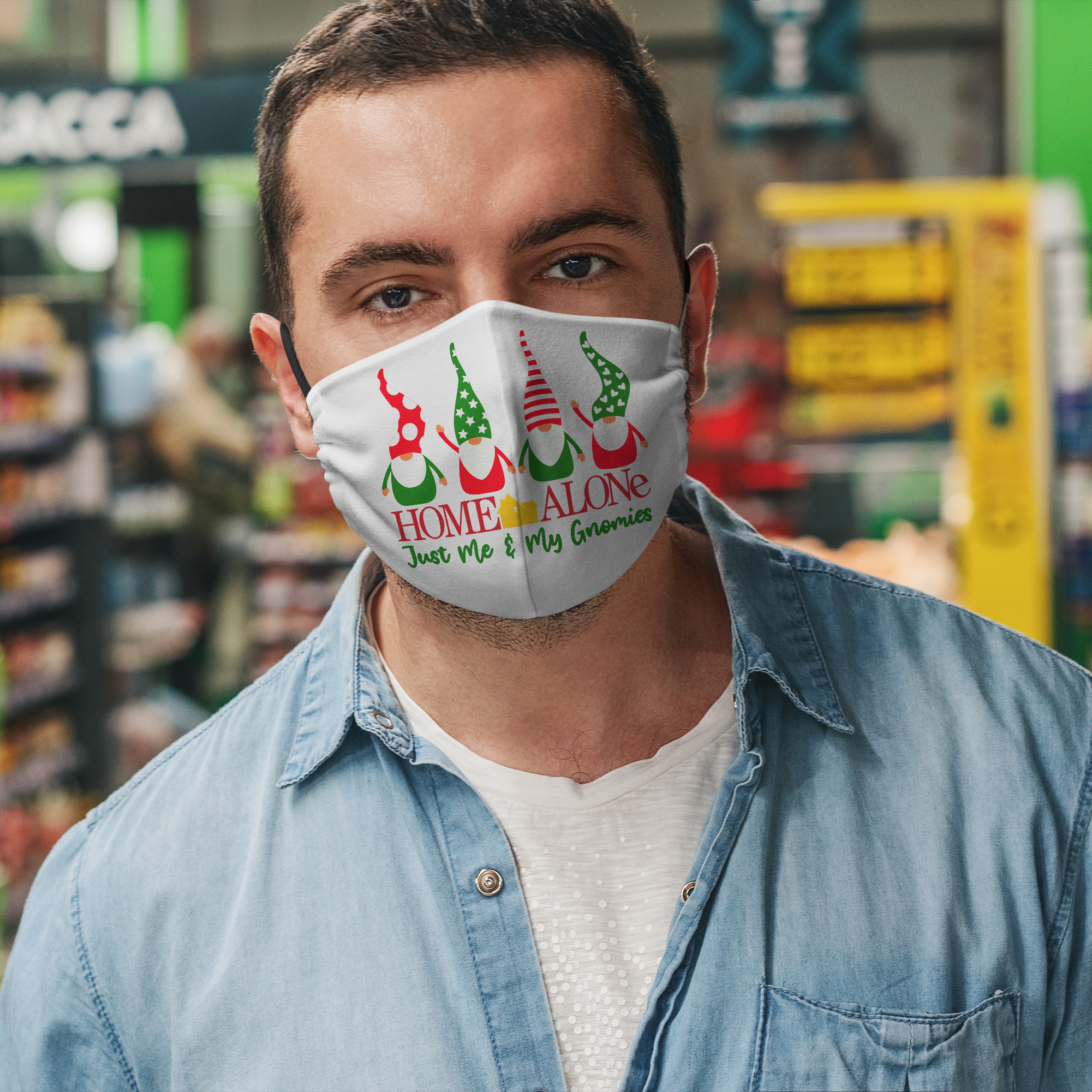 Gnome Alone Washable Reusable Custom Funny Gnome Christmas Face Mask