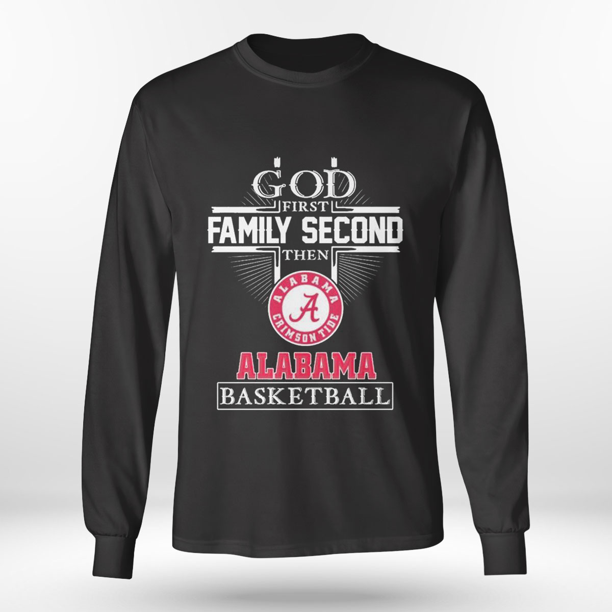 God Family Second First Then Alabama Basketball Shirt Longsleeve T-shirt is a stylish, comfy shirt. Made of 100% cotton, it is cool and soft and keeps you cool in summer days. This edgy shirt comes in different colors, but the black stands out the most and matches with everything. It has many uses like casual wear, party wear, office wear and much more. Product details: