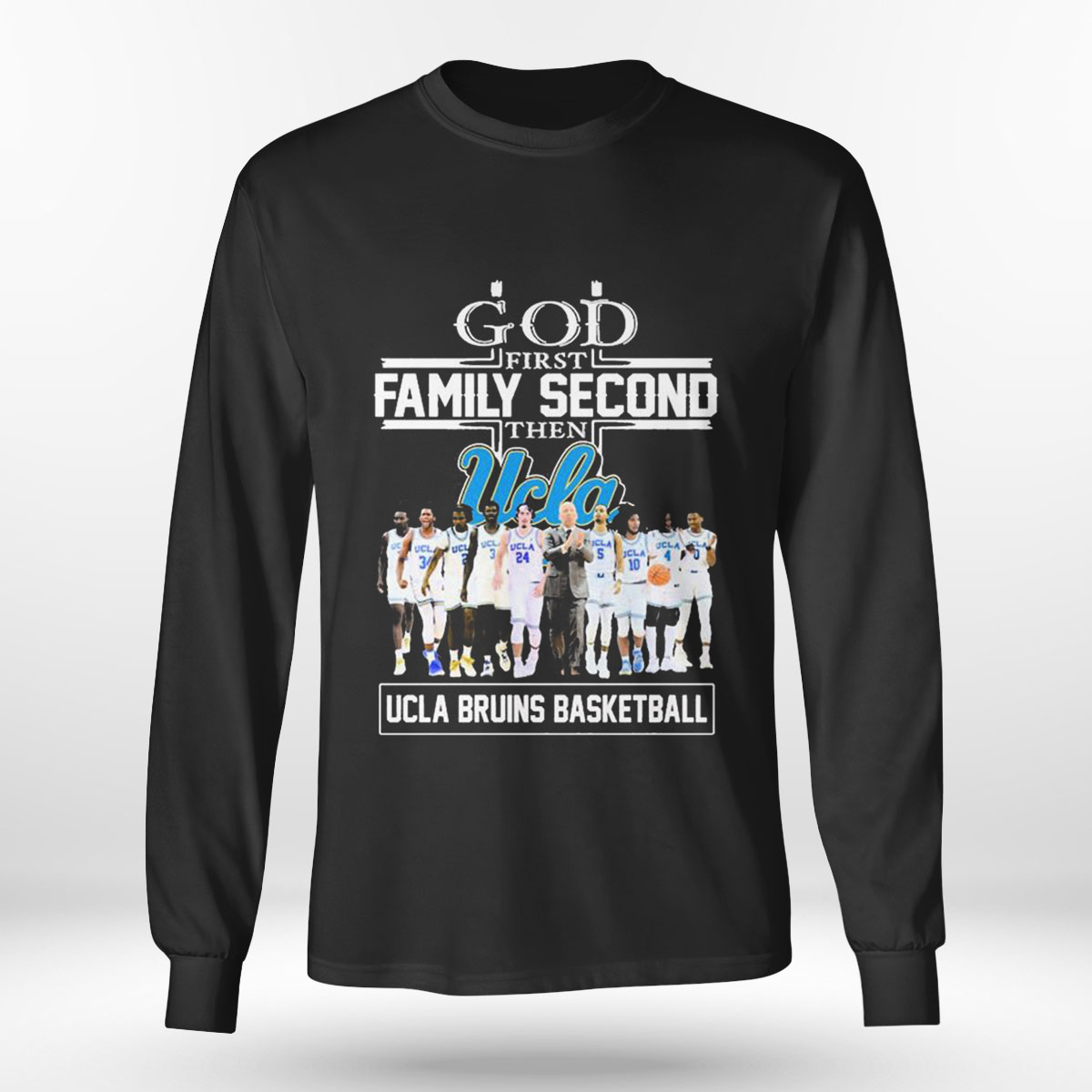 If you’re searching for a God First Family Second Then Team Zach Charbonnet Kam Brown Ryan Cragun Ucla Bruins T-shirt that can offer both a soft feel and breathability to keep you comfortable on sweltering summer days, look no further. Our 100% cotton T-shirt is the answer to your wardrobe woes. Made from soft, breathable cotton, it will keep you comfortable and chic throughout the season. Not only is it easy to wear, but it’s also easy to care for – simply toss it in the washing machine and dry it on low heat, and it will look brand new. It’s also an excellent option for those with sensitive skin, thanks to its natural hypoallergenic properties. You don’t have to take our word for it – give it a try and see for yourself! Purchase your cotton T-shirt today and add a touch of comfort and style to your casual or dressed-up looks. Don’t wait any longer, add it to your cart and experience the benefits of our 100% cotton T-shirt !