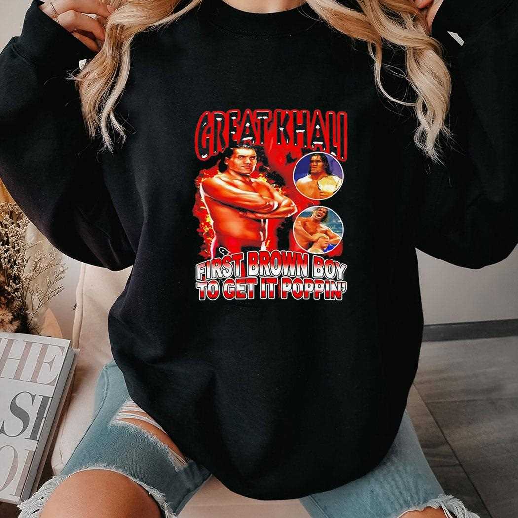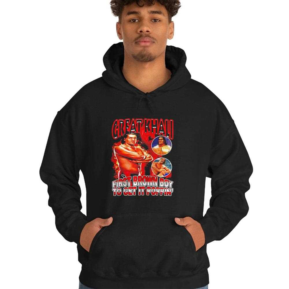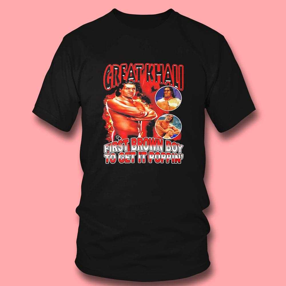 Celebrate the legendary career and cultural impact of The Great Khali with this vibrant “First Brown Boy To Get It Poppin” tribute tee. The design features a high-energy, comic-book style illustration of the wrestling giant in his prime, surrounded by explosive graphics and bold, celebratory typography. The rich reds and golds reflect the prestige and power of a true pioneer in sports entertainment. Printed on a premium black cotton base, this garment offers a structured fit that is perfect for live events or street style. The high-definition screen print is designed to be as durable as the man himself, ensuring the colors stay sharp for years. This is an essential piece for wrestling fans and those who want to honor a historic trailblazer. Pay respect to the giant—order your Great Khali First Brown Boy To Get It Poppin Tee now and represent a legend!. T-shirt !