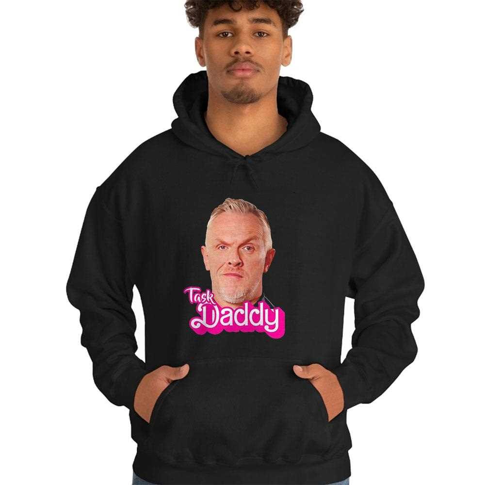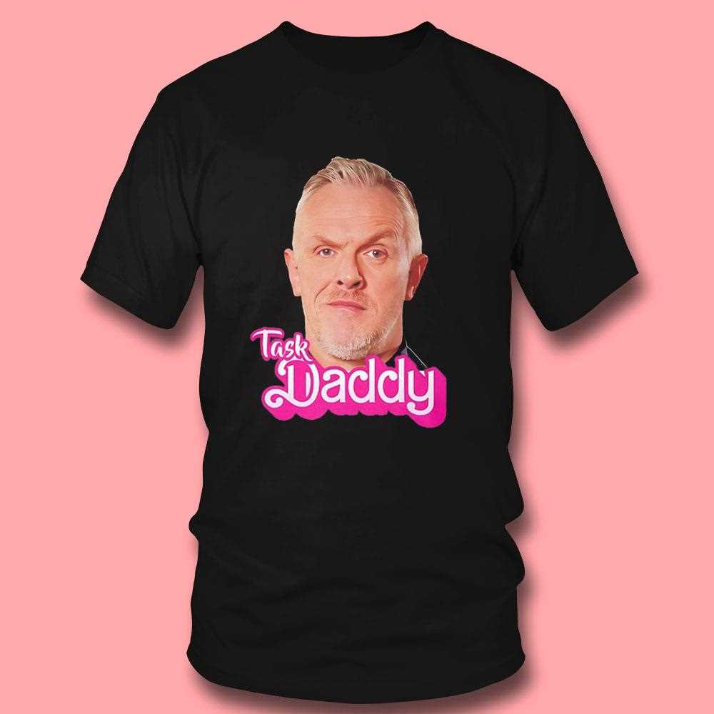 For fans of British comedy and organized chaos, this “Task Daddy” t-shirt is an absolute must-have. Celebrating the towering presence of Greg Davies, the host of the hit show Taskmaster, this shirt leans into the hilarious, authoritarian persona he adopts on screen. The design features a portrait of Greg Davies, likely with his signature stern expression or a golden throne motif, accompanied by the humorous and slightly cheeky text “Task Daddy.”