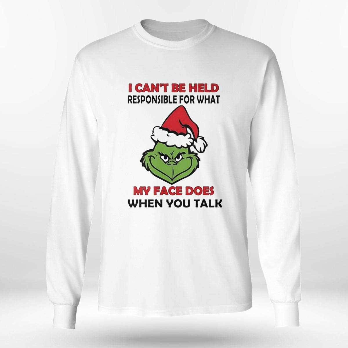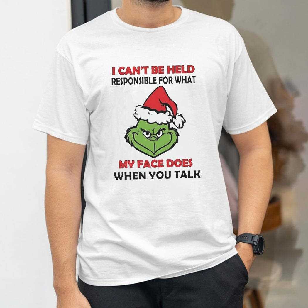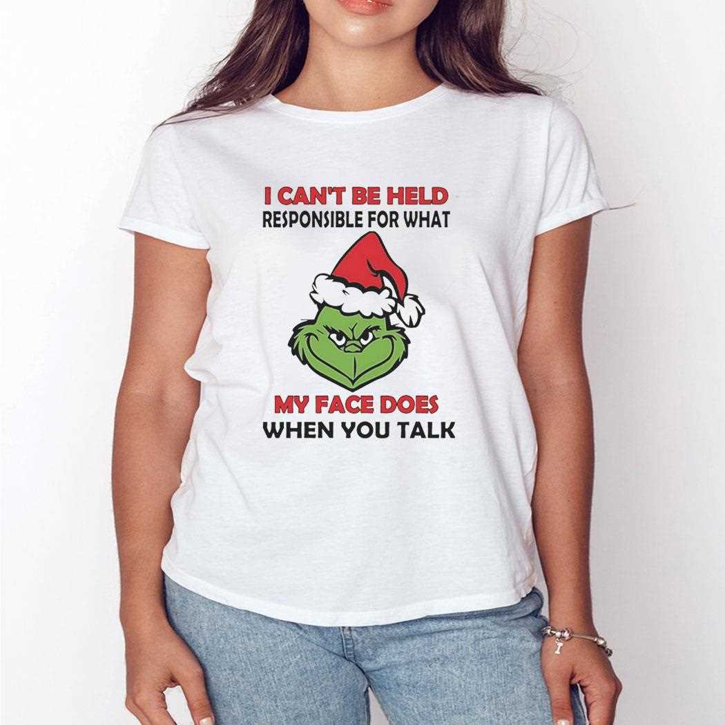 Let your face do the talking without the guilt. Get your hands on the Grinch I Cant Be Held Responsible For What My Face Does When You Talk Christmas 2025 Tee and express yourself freely!. T-shirt !