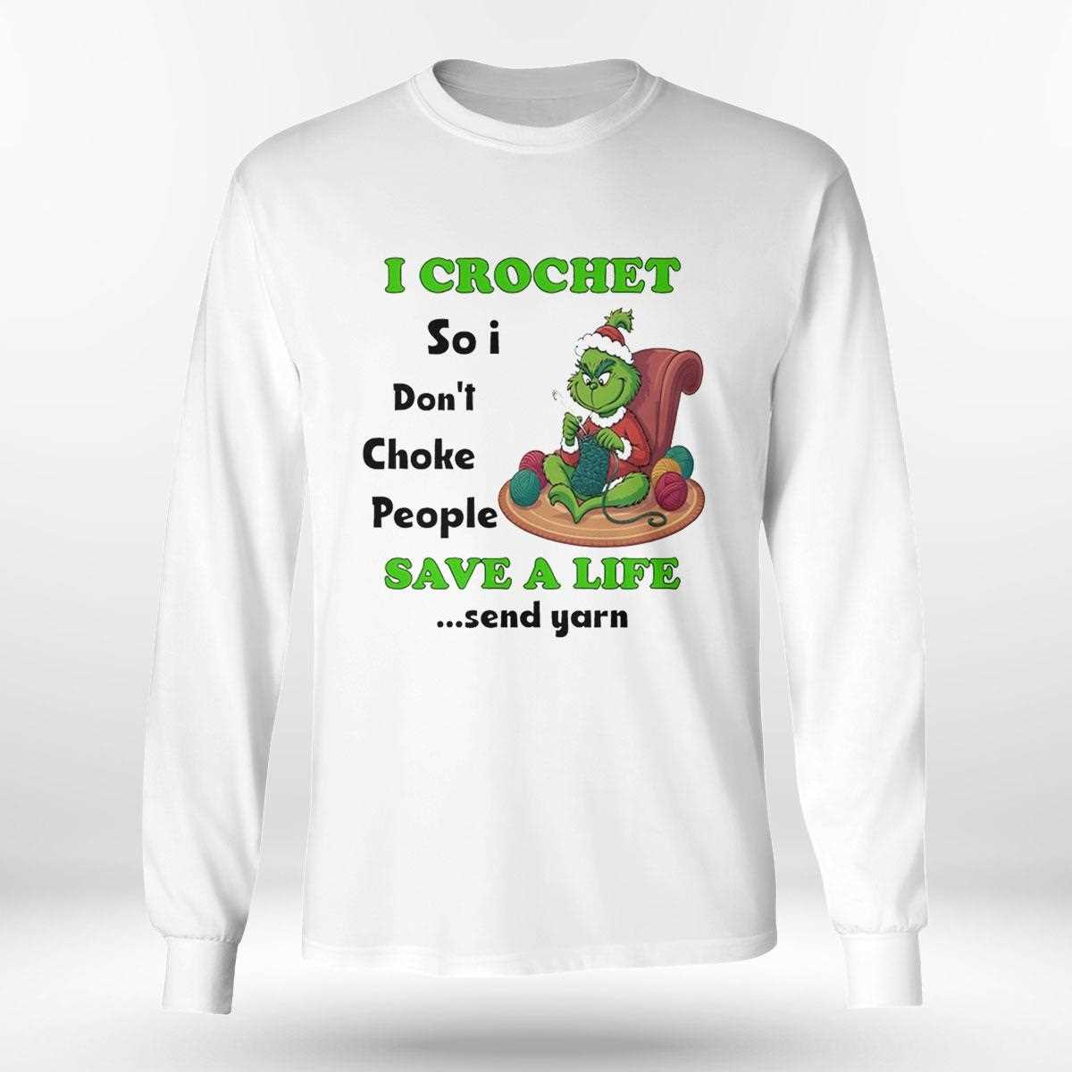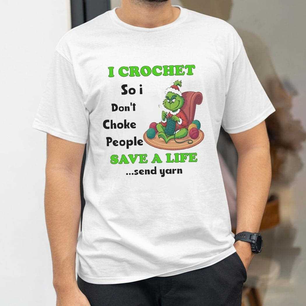Keep your hands busy and your record clean. Purchase the Grinch I Crochet So I Dont Choke People Save A Life christmas 2025 Tee today and support the arts (and public safety)!. T-shirt !