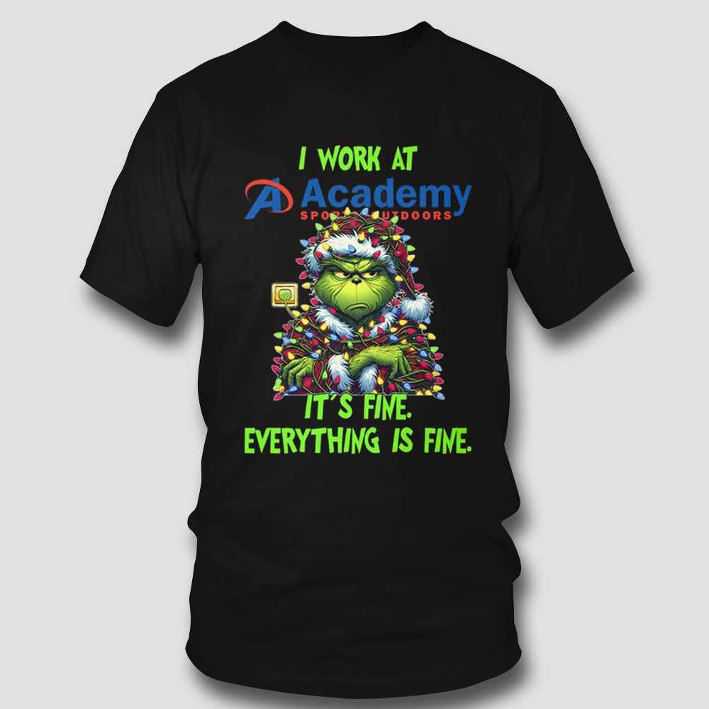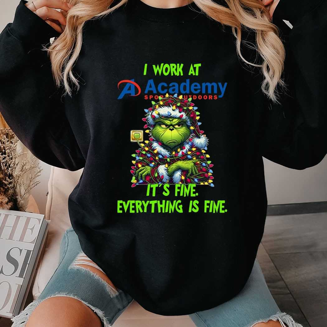 Grinch I Work At Academy Sports Outdoors It’s Fine Everything Is Fine Christmas Lights Shirt
