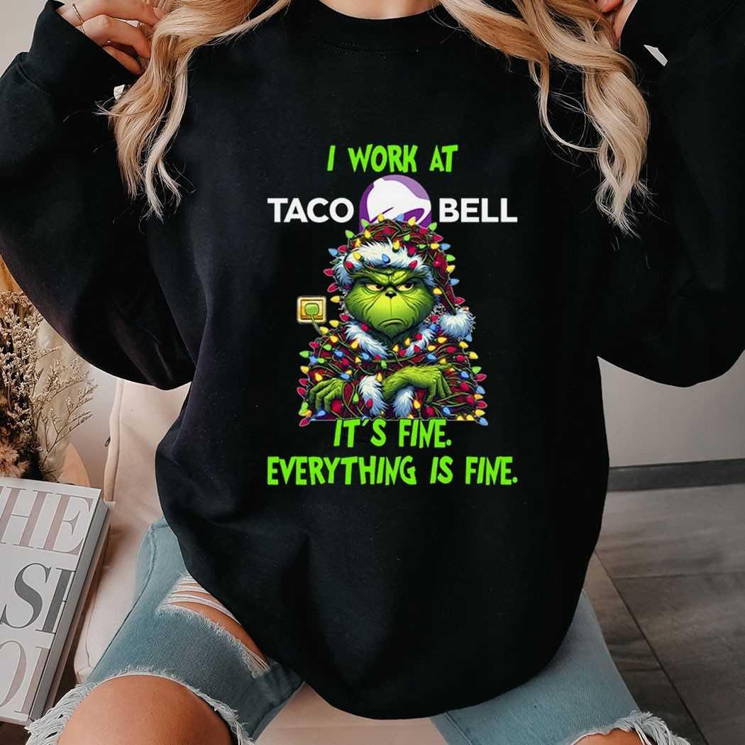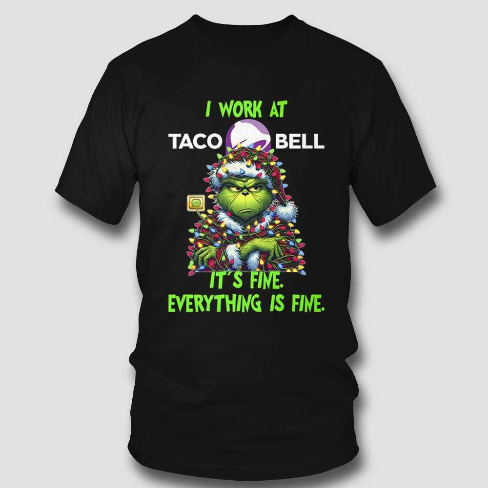 Grinch I Work At Taco Bell It’s Fine Everything Is Fine Christmas Lights T-shirt