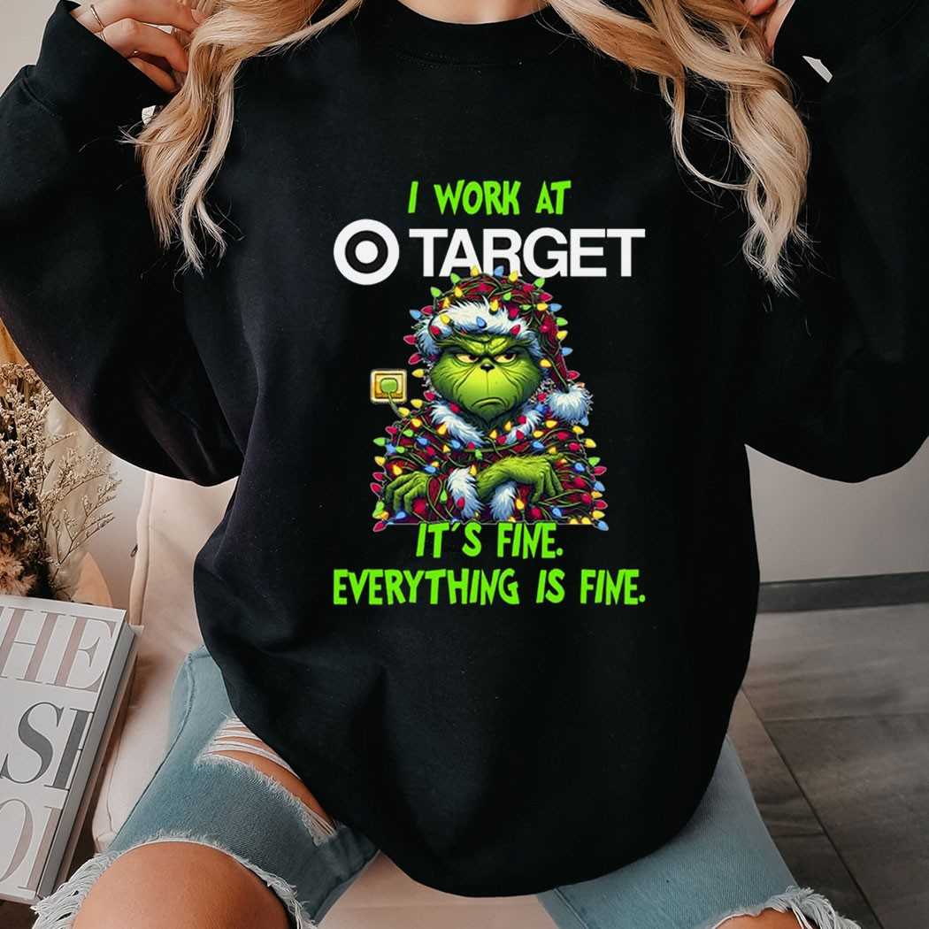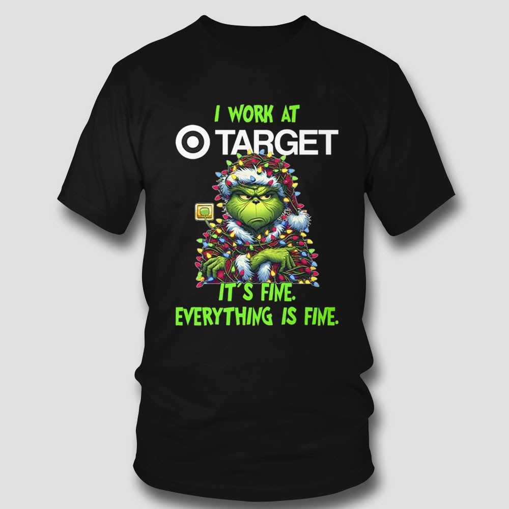 Grinch I Work At Target It’s Fine Everything Is Fine Christmas Lights T-shirt