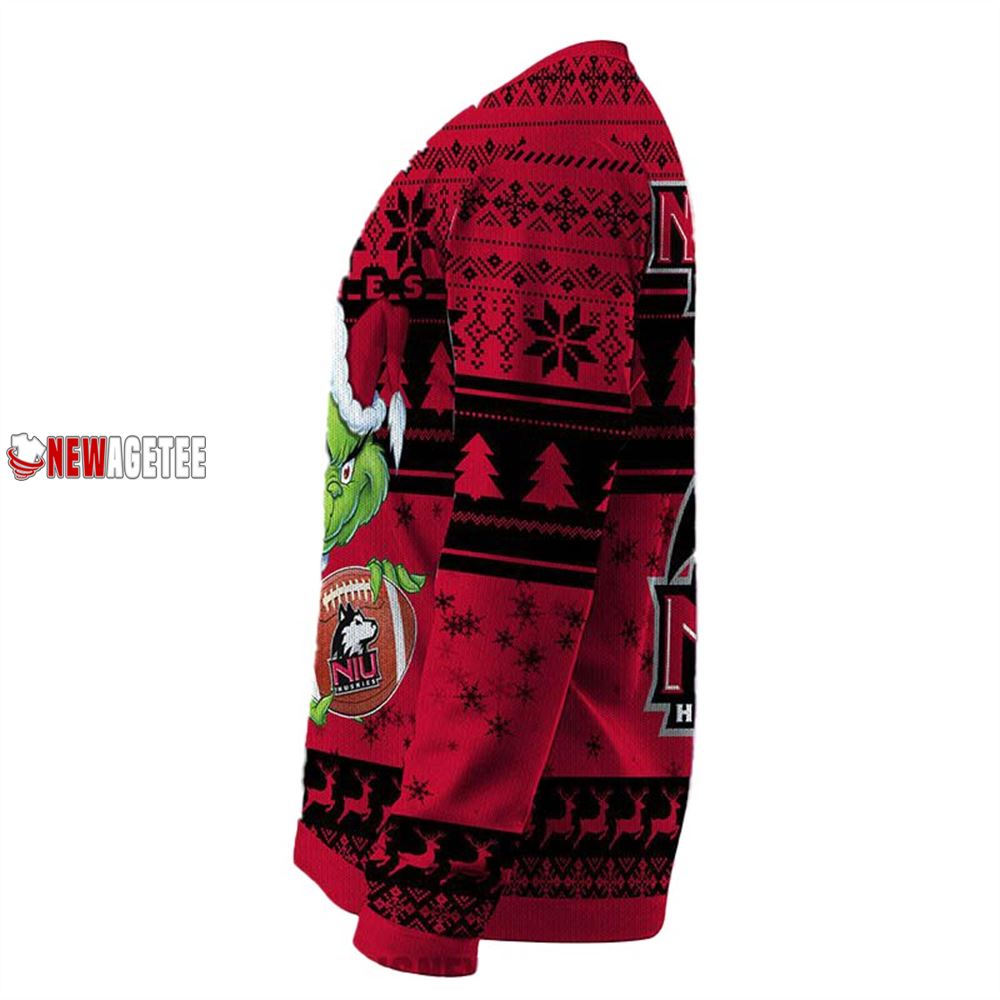 Don’t miss out on this limited edition Grinch Stole Northern Illinois Huskies NCAA Christmas Ugly Sweater. Show off your team spirit in style and spread some holiday cheer wherever you go. Get yours today and let everyone know that even during Christmas time, you’re still proud to support your favorite college sports team!. The Grinch Stole Northern Illinois Huskies Ncaa Christmas Ugly Sweater are made from a high quality wool fabric that allows the sweater to breath and regulate your body’s temperature. This active fibre is designed to react to your body’s temperature, keeping you warm in the winter and cool in the summer.