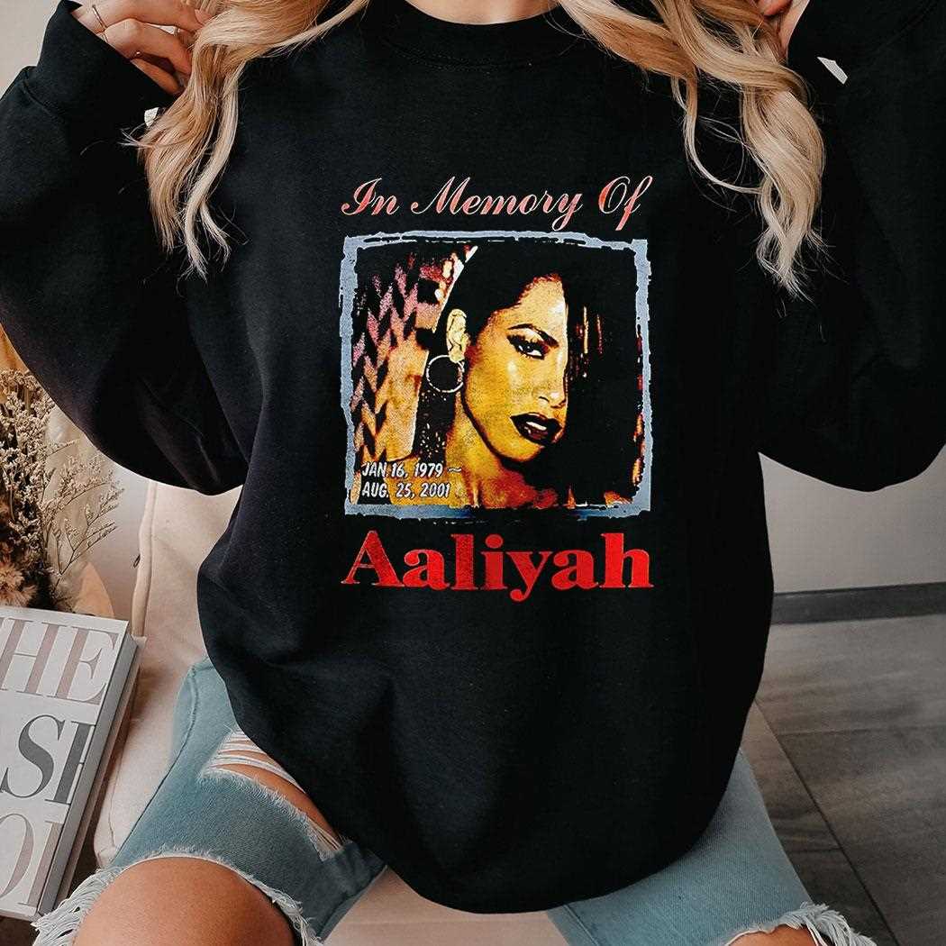 Hailey Baldwin In Memory of Aaliyah Tribute T-Shirt: Pay homage to a music icon with this “In Memory of Aaliyah” tribute t-shirt. The tee features a classic photo of the beloved R&B princess, offering a simple yet powerful way to honor her enduring legacy. The title suggests a style famously worn by Hailey Baldwin. One in a million. Keep the memory of Aaliyah alive with this beautiful and respectful tribute tee. It’s a timeless piece for any fan of her music and influence. Add this essential shirt to your wardrobe today..
