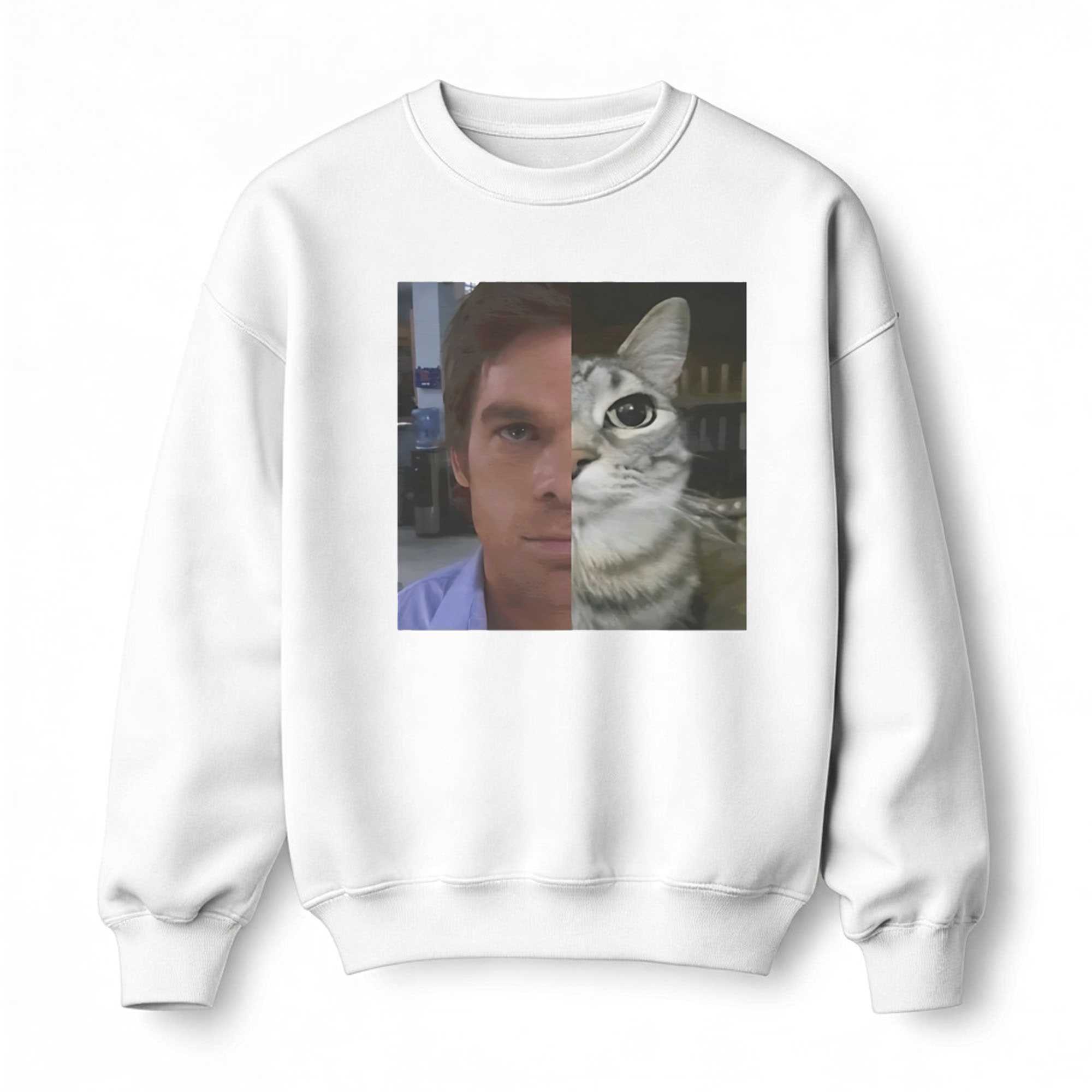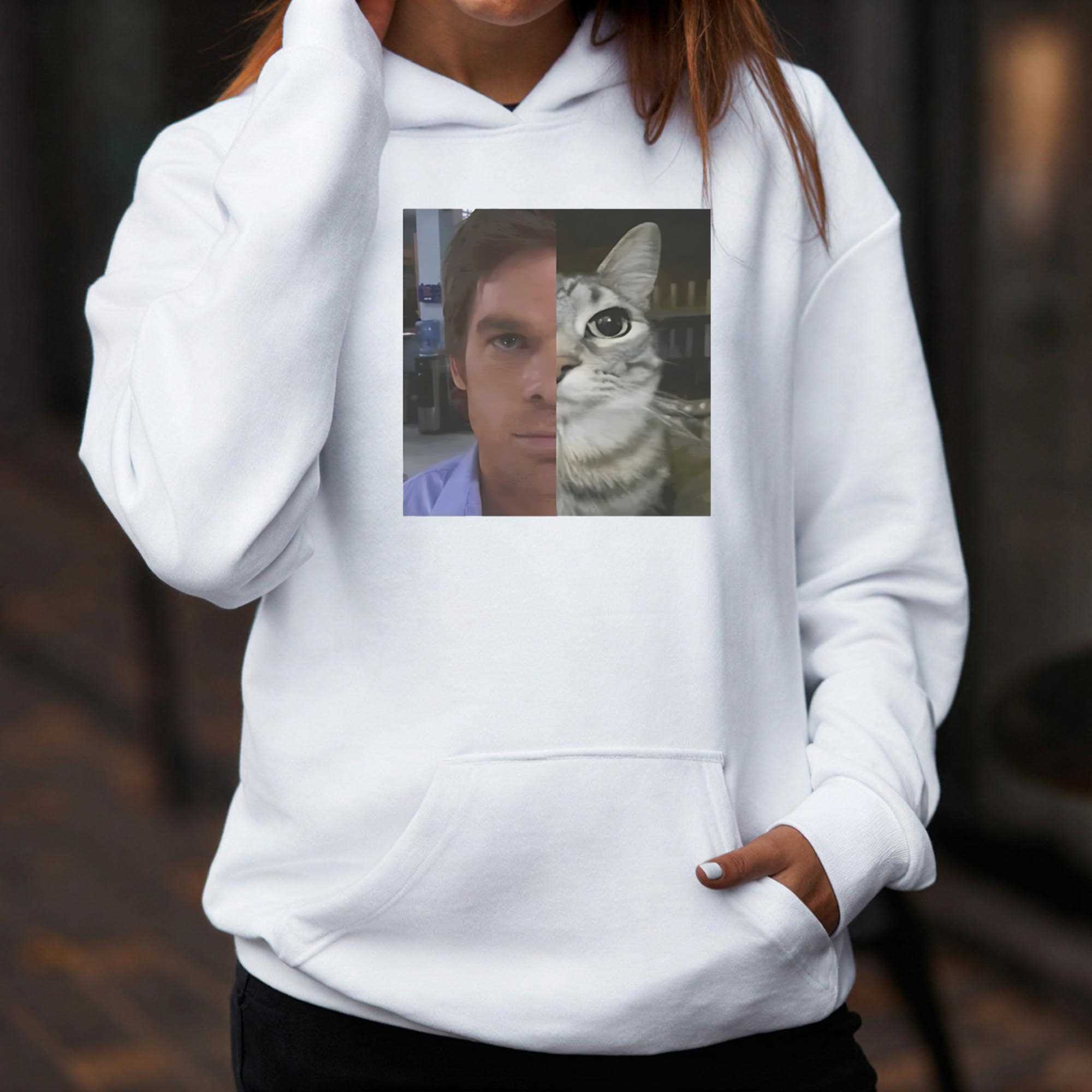 Embrace your inner feline spirit and show off your unique personality with the Half Human Half Cat Tee. This design features a creative and high-definition photographic mashup of a man’s face and a cat’s face, perfectly blended to create a striking “hybrid” look. Above and below the image, the minimalist text frames the graphic, acknowledging the quirky reality that many of us feel more connected to our pets than to other people. It’s a brilliant choice for the “cat dad” or anyone who values the mysterious and independent nature of their feline friends. The high-quality print captures every detail, from the human gaze to the texture of the cat’s fur, ensuring a visual impact that is both intriguing and humorous. Set on a clean white tee, the graphic stands out with professional and friendly energy. The shirt is crafted from ultra-soft, 100% premium cotton, providing a lightweight and breathable fit that is perfect for a relaxed day at home or a casual walk in the park. It celebrates the bond between humans and animals in a way that is as unique as you are. Whether you’re a lifelong cat lover or just love a good conversation-starting graphic, this tee is an essential addition to your collection. Show off your true colors and let everyone know about your hybrid spirit. Secure this fun look and buy the Half Human Half Cat Tee today!. T-shirt !