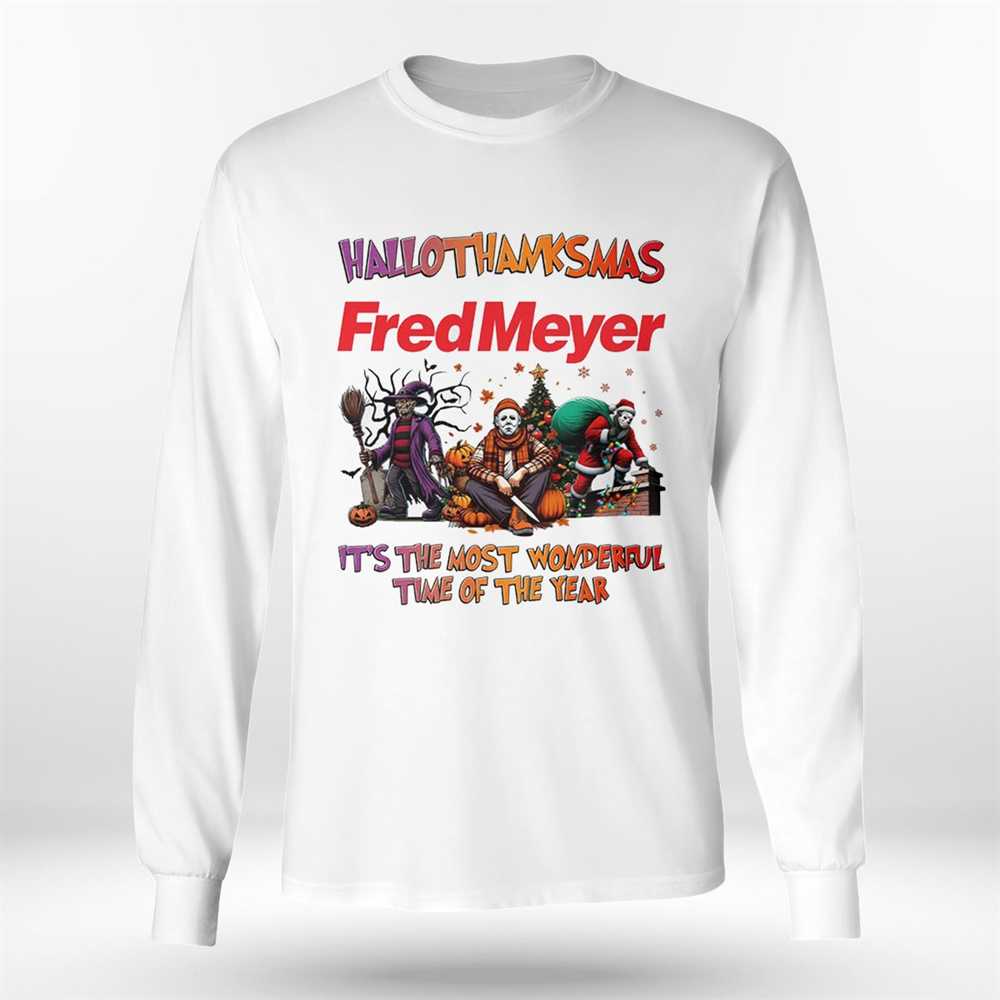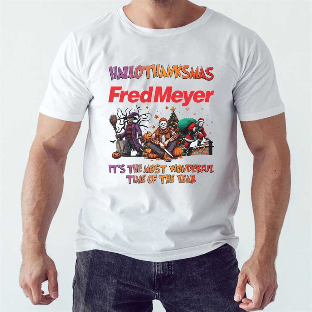 Find Your Frightful Fashion! Secure your Hallothankmas Horror Crew: Fred Meyer – It’s The Most Wonderful Time Of The Year tee and celebrate the season with a unique flair!. T-shirt !