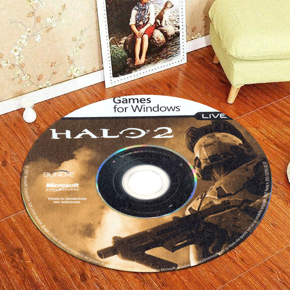 - Stain-resistant material makes cleaning easy. This Halo 2 Games For Windows Disc Round Rug Carpet prevents dirt from clinging to the fiber, so it’s easy to keep clean.
