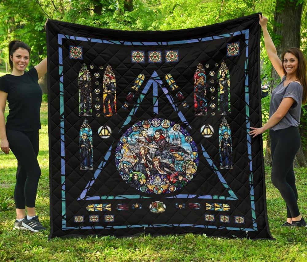 Harry Potter Stain Glass Style Hogwarts Wizard School Quilt Blanket