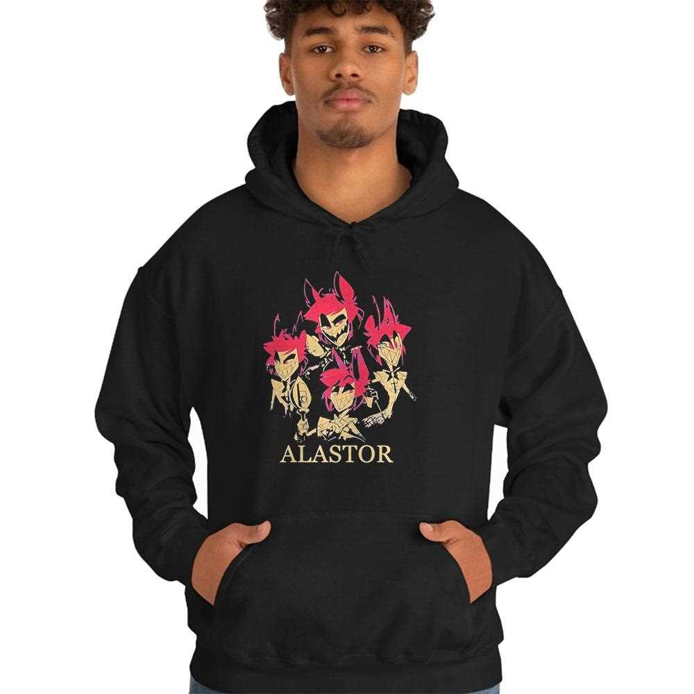 This t-shirt is a grail item for fans of Hazbin Hotel. It exudes an aura of dangerous elegance and vintage horror. Alastor is not just a villain; he is a showman, and this design reflects his theatrical personality. The graphic is detailed and dynamic, making it look like a piece of high-quality fan art brought to life on fabric. It’s perfect for wearing to anime conventions, comic shops, or just as a daily statement piece that sets you apart from the crowd. It signals to other fans that you are part of the coven.