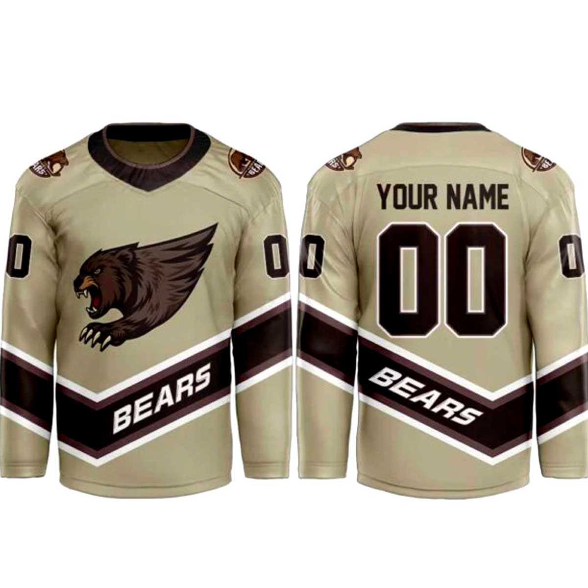 Experience unparalleled comfort and durability with this premium-grade jersey. Crafted from a heavyweight moisture-wicking fabric, it’s engineered to keep you dry and comfortable, whether you’re making plays on the ice or cheering from the stands. The authentic breathable mesh panels ensure optimal airflow, while the loose, athletic oversized fit provides unrestricted movement and a classic hockey silhouette. Utilizing advanced sublimation printing technology, the intricate bear graphic, sharp ‘BEARS’ text, and all accent details are deeply infused into the fabric, guaranteeing vibrant, fade-resistant colors and graphics that will stand the test of time, wash after wash.