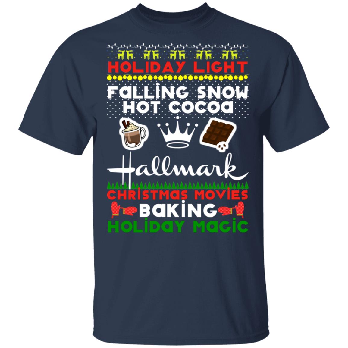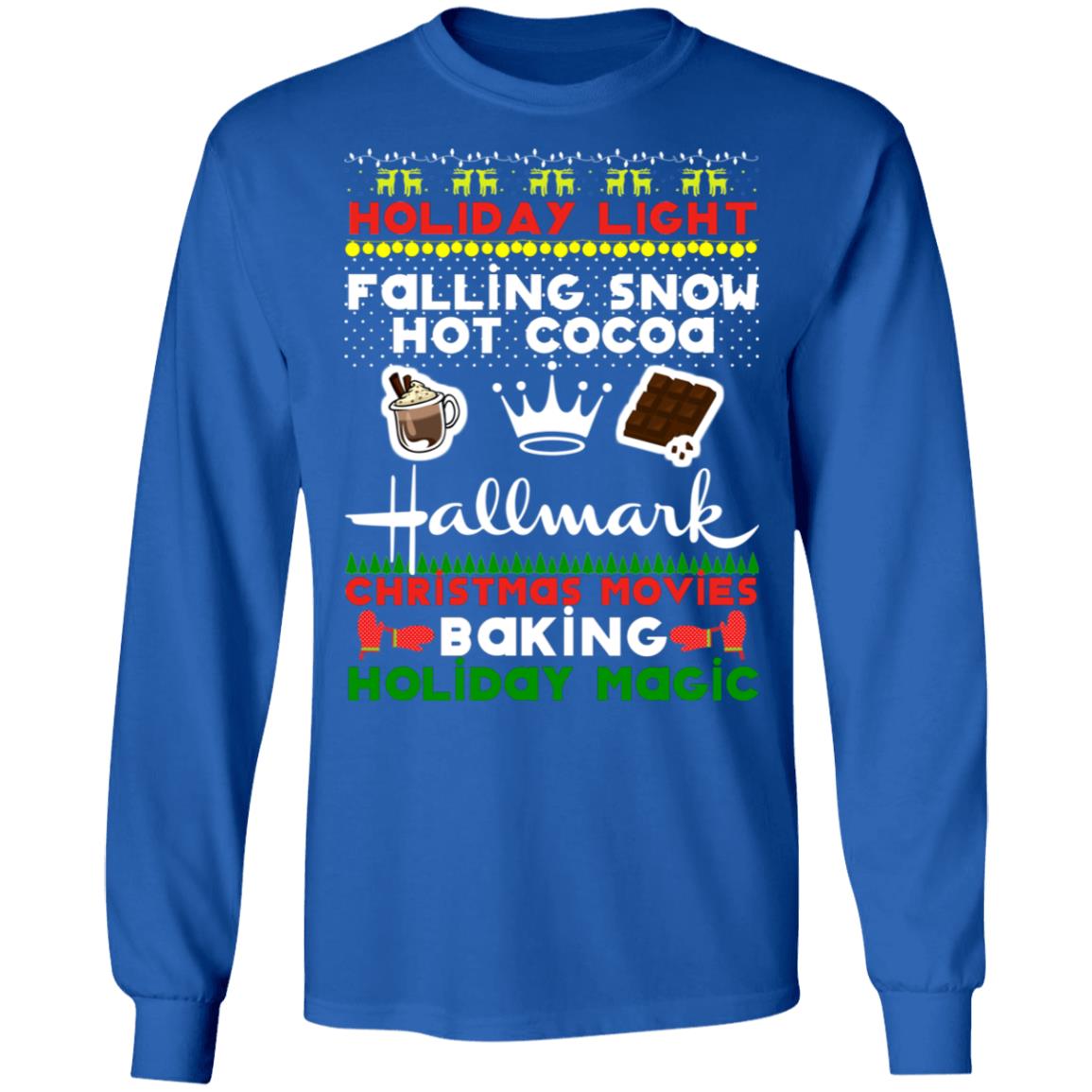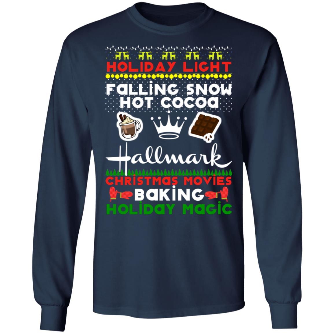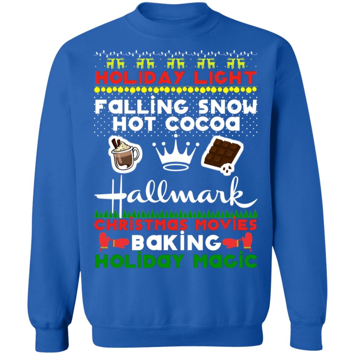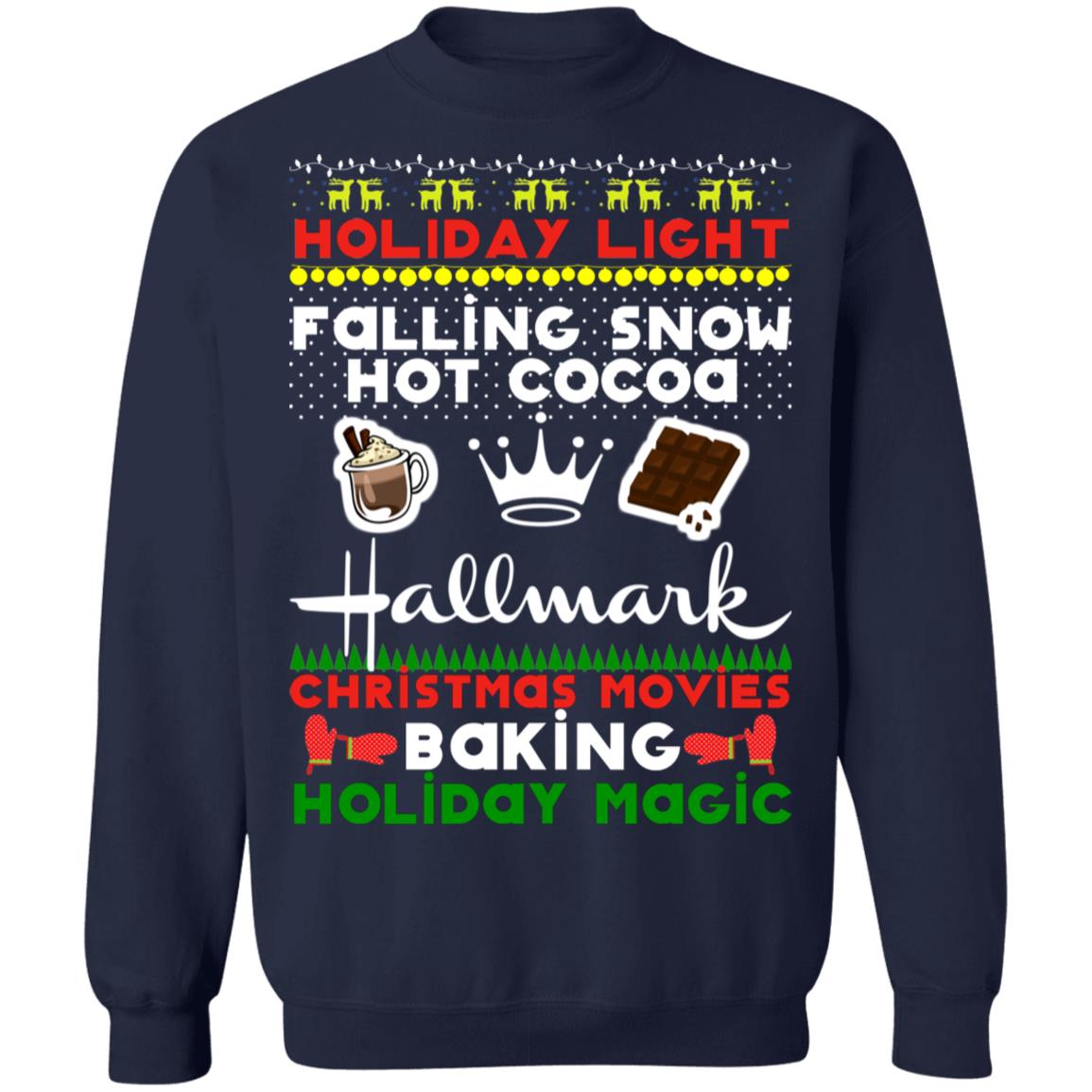 Holiday Light Falling Snow Hot Cocoa Hallmark Christmas Movies Baking Holiday Magic Ugly Christmas Sweater