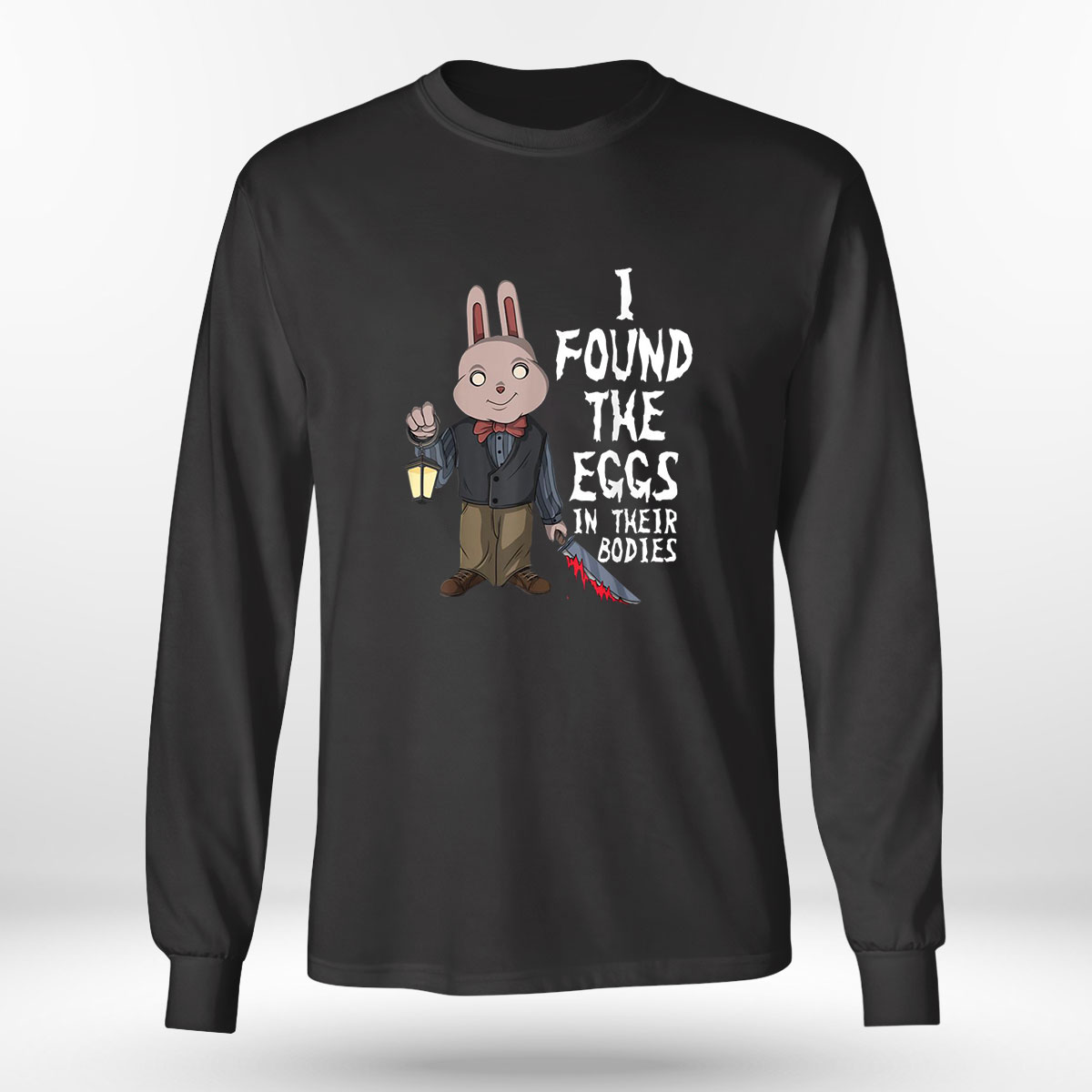 Horror Movie Shirt I Found The Eggs In Their Bodies Scary Easter Bunny Costume Sweatshirt, Tank Top, Ladies Tee is a stylish, comfy shirt. Made of 100% cotton, it is cool and soft and keeps you cool in summer days. This edgy shirt comes in different colors, but the black stands out the most and matches with everything. It has many uses like casual wear, party wear, office wear and much more. n Product details: