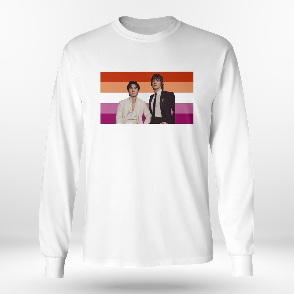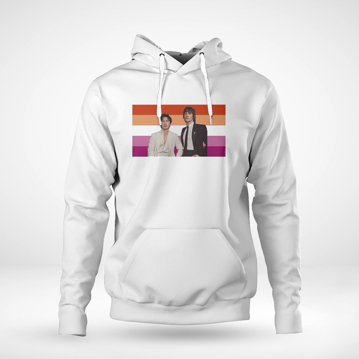 Celebrate love, identity, and the power of representation with this beautiful Hudson Williams and Connor Storrie pride tee. The design features an artistic photograph of the couple set within the vibrant and symbolic colors of the Lesbian Pride flag—ranging from deep orange to vibrant pink. This shirt is a proud and stylish statement for the LGBTQ+ community and their allies, celebrating a legacy of visibility and truth. The high-resolution print ensures the photographic detail and the flag colors remain bright and impactful on the premium black fabric. Crafted from an ultra-soft, ringspun cotton, this shirt offers a flattering fit and maximum comfort for pride events or daily life. It represents a commitment to inclusivity and the beauty of being your authentic self. Show the world that love knows no bounds with this high-quality, meaningful garment. Wear your pride and celebrate the love—order your Hudson Williams And Connor Storrie Lesbian Pride Flag Tee today!.