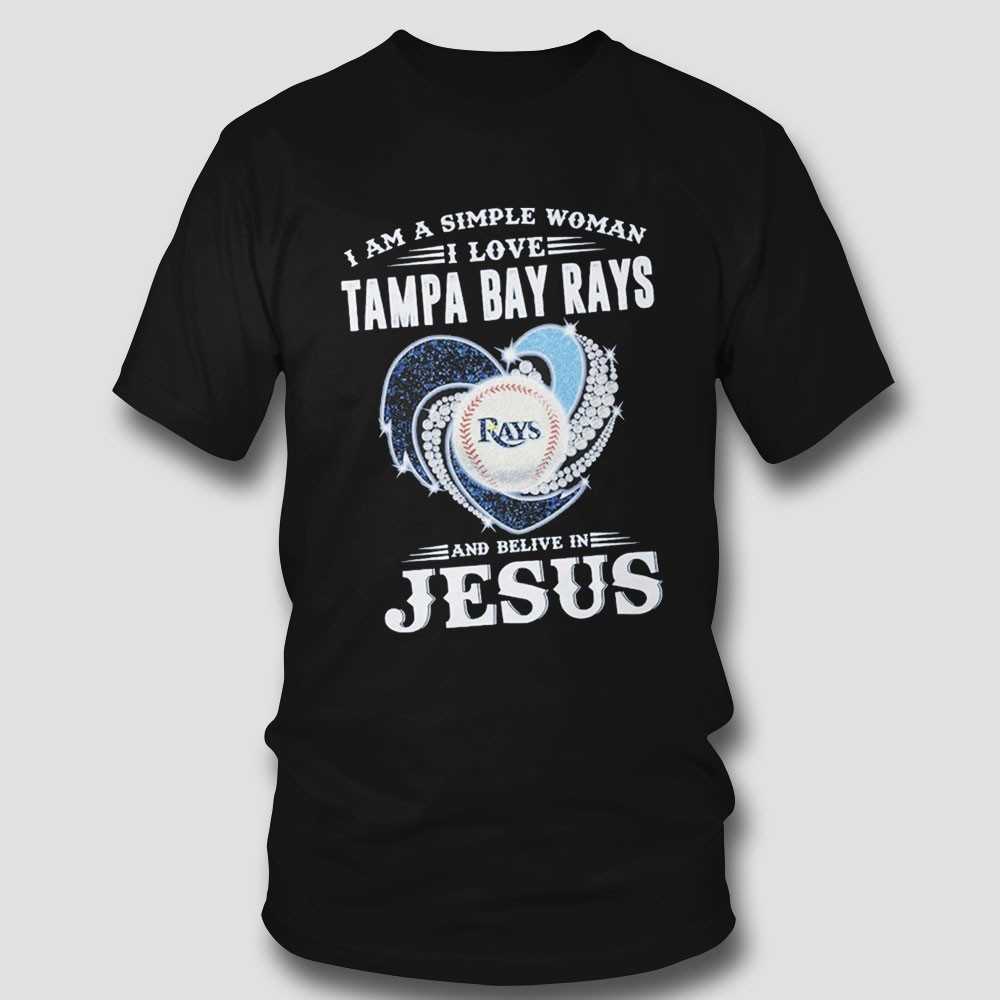 I Am A Simple Woman I Love Tampa Bay Rays And Believe In Jesus Diamond Heart Shirt