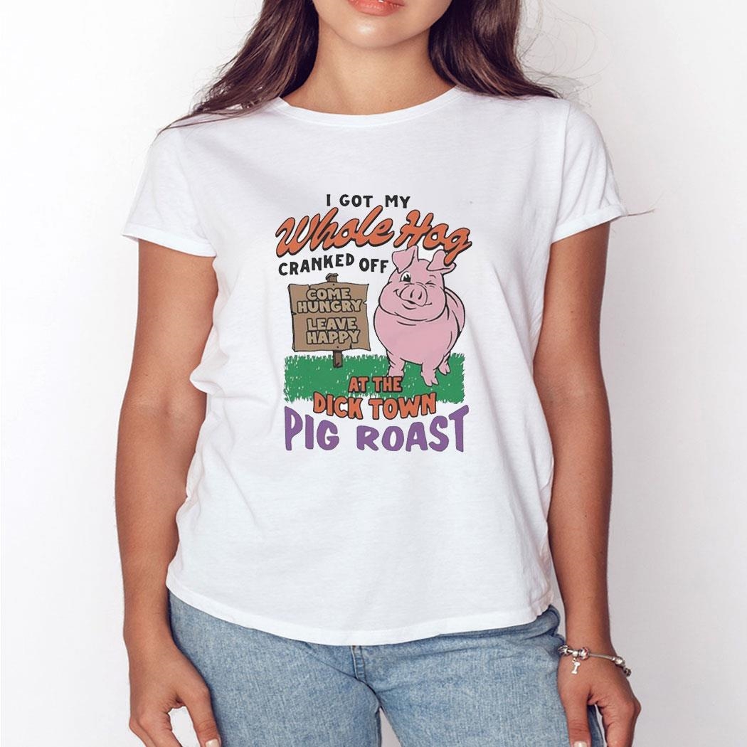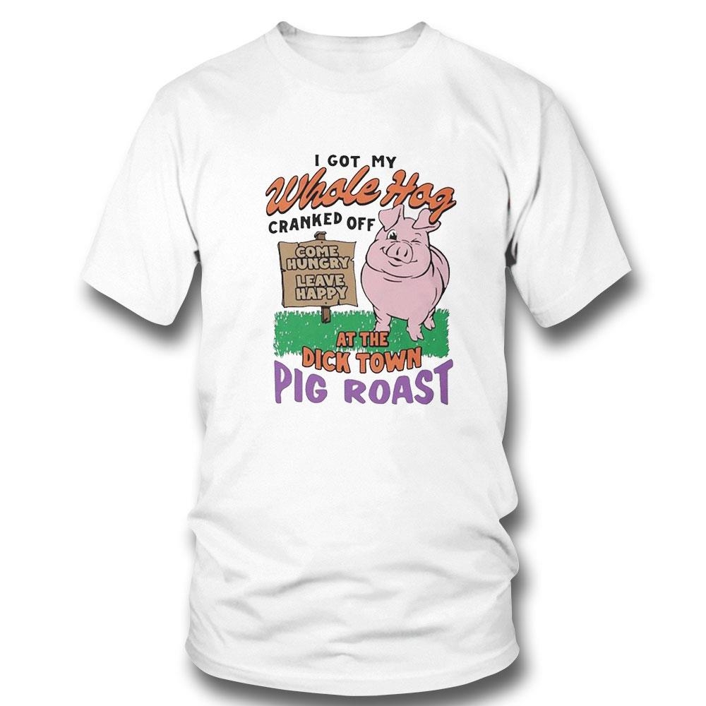 .The “I got my whole hog cranked off at the dick town pig roast” t-shirt is a must-have for any true fan of pork-centric festivities. This bold and unapologetic design makes a statement that you’re not afraid to indulge in the best parts of small-town revelry.