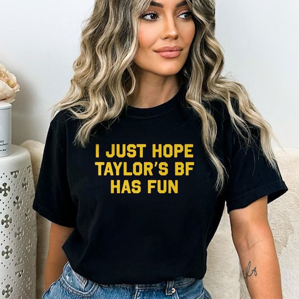 .Introducing the “I Just Hope Taylor’s BF Has Fun” Shirt and Hoodie – the perfect way to show your support and love for Taylor’s significant other! Whether you’re a fan of Taylor or simply want to spread positivity, this shirt is a must-have.