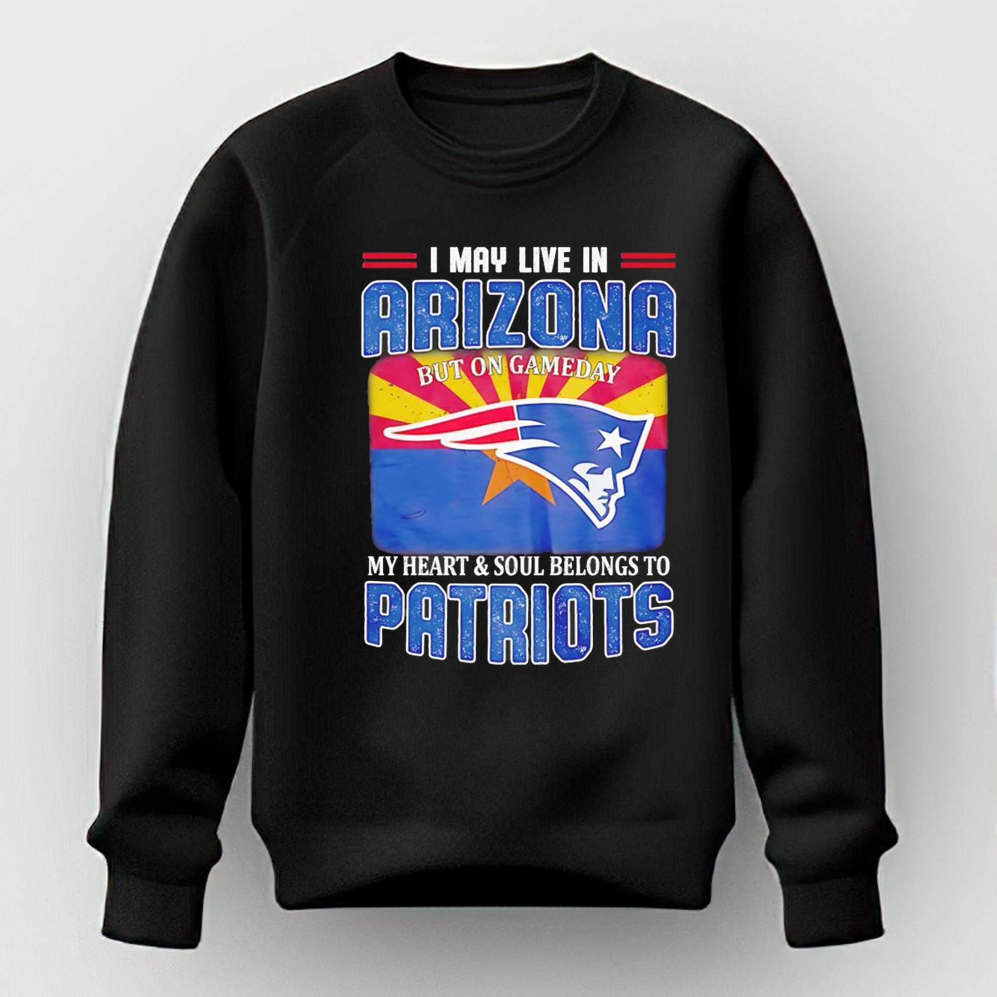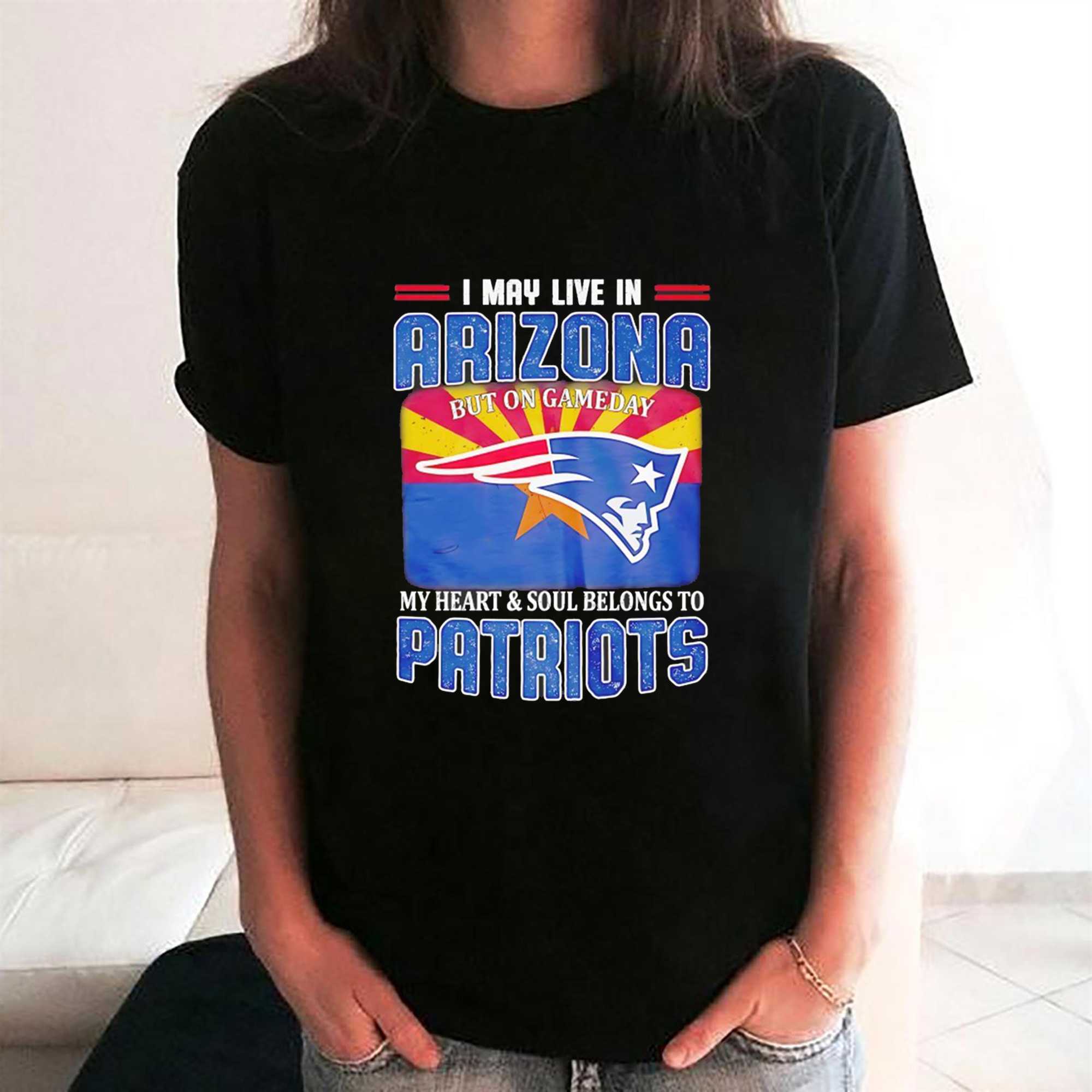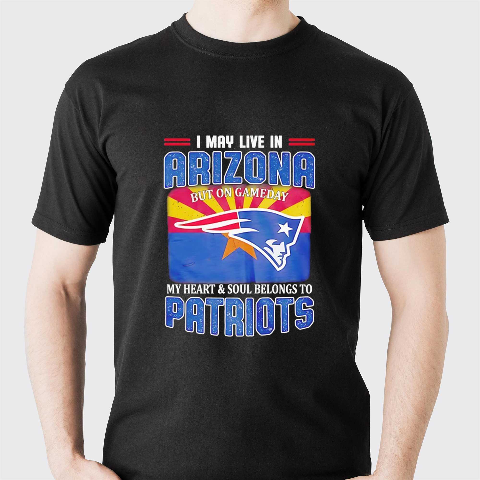 I May Live In Arizona But On Gameday My Heart And Soul Belong To New England Patriots Tee