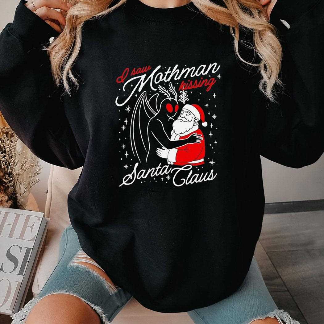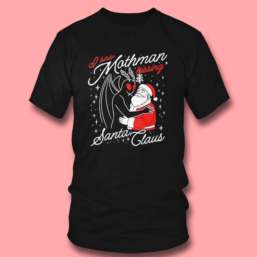I Saw Mothman Kissing Santa Claus Christmas Tee