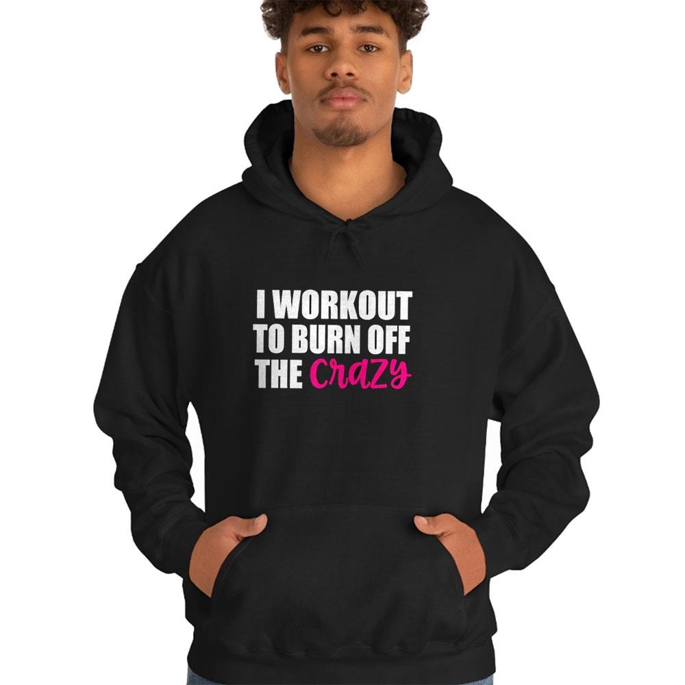 So why settle for plain old workout gear when you can make a statement with the “I workout to burn off the crazy” tee in long sleeve shirt form? Add this must-have piece to your fitness wardrobe today and show the world that staying active can be both fun and fashionable!.