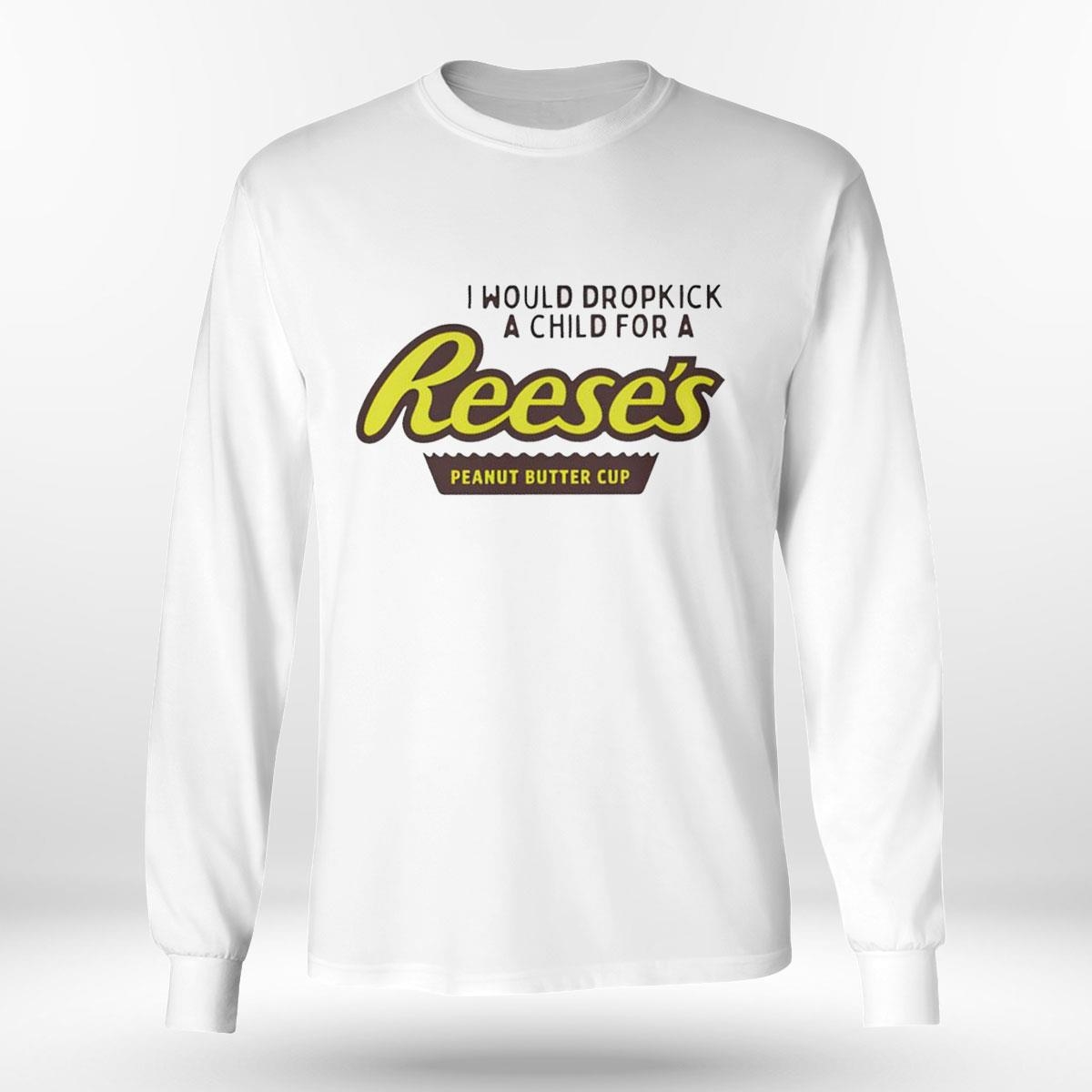 Don’t just dream about your favorite candy – wear your passion proudly with this one-of-a-kind design. Order your “I Would Dropkick a Child for a Reese’s Peanut Butter Cup” shirt or hoodie today and join the ranks of true Reese’s devotees..