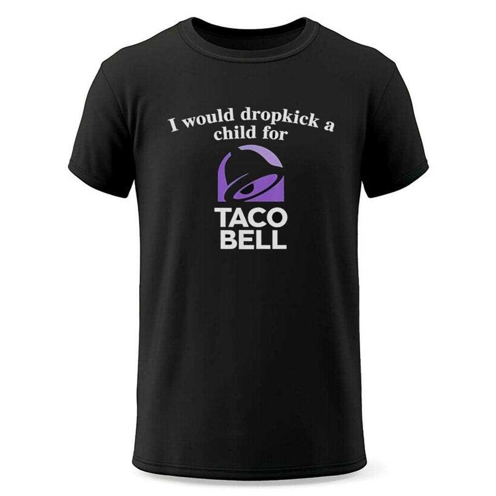 .When it comes to expressing our love for fast food, few statements are as bold and humorous as “I Would Dropkick A Child For Taco Bell.” This shirt isn’t just a piece of clothing; it’s a declaration of loyalty to one of the most beloved fast-food chains out there. Taco Bell has a unique ability to capture our hearts (and appetites) with its innovative menu items and late-night cravings.